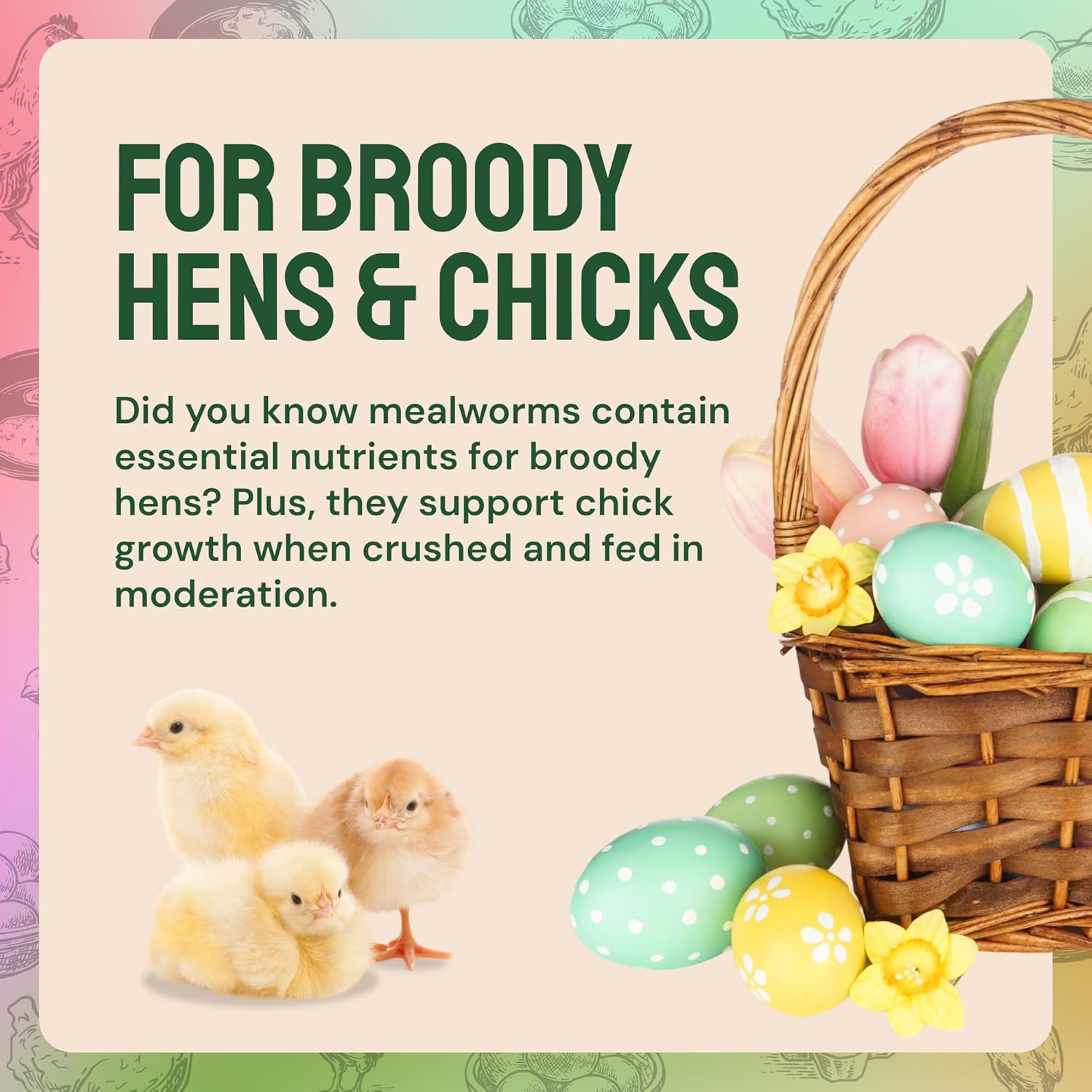 - Perfect For Every Life Stage: These dried meal worms for birds are suitable for all life stages and various breeds like Rhode Island Red, these mealworms are a must-have for your chicken feed routine. They can be hand-fed or used as a supplement to regular chicken food