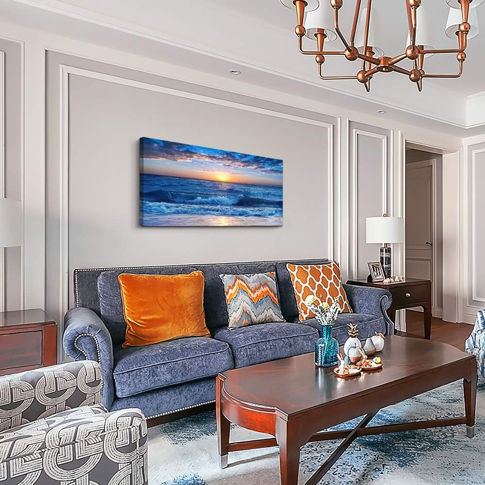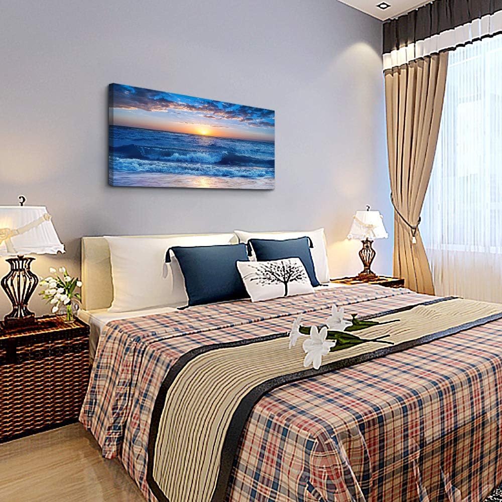 canvas wall art for living room Blue Ocean Sea sun landscape painting bathroom Wall Decor Ready to Hang for Home Decorations office family bedroom kitchen Works canvas Prints pictures 20" x 40"inch