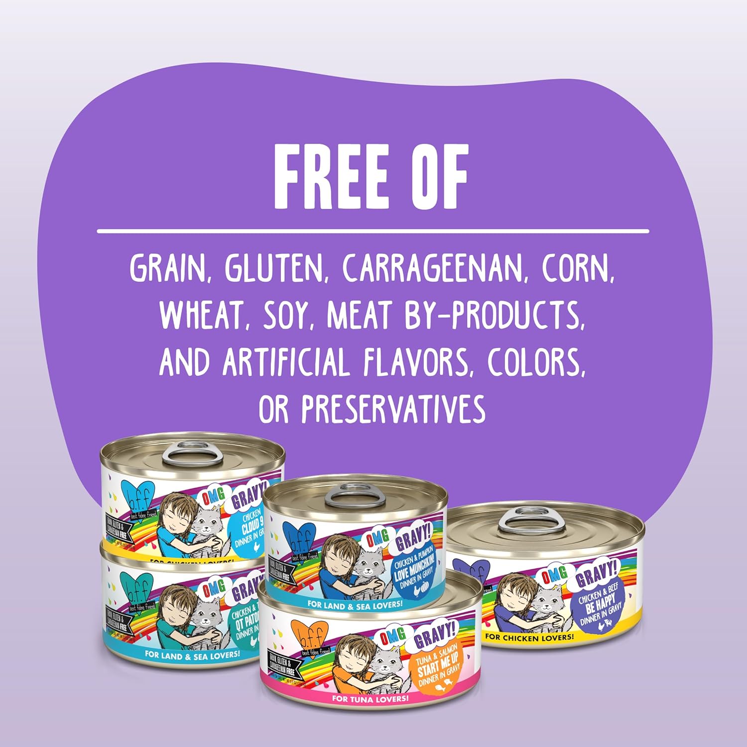 Weruva B.F.F. OMG - Best Feline Friend Oh My Gravy! Grain-Free Wet Cat Food Cans, Crazy 4 U! Chicken & Salmon, 5.5-Ounce Can (Pack of 8)