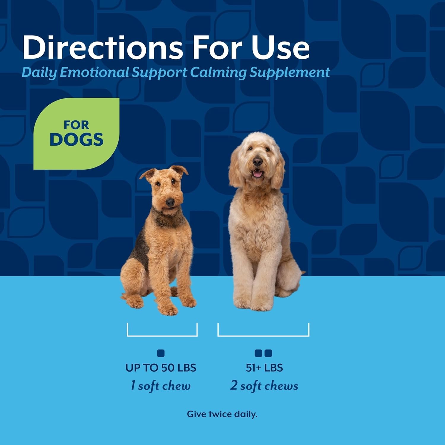 - DOG SUPPLEMENT FOR STRESS AND NERVOUSNESS: Botanical blend of ingredients in this dog soft chew supplement help to maintain contentment during separation, travel and tension caused by changes in daily routine.