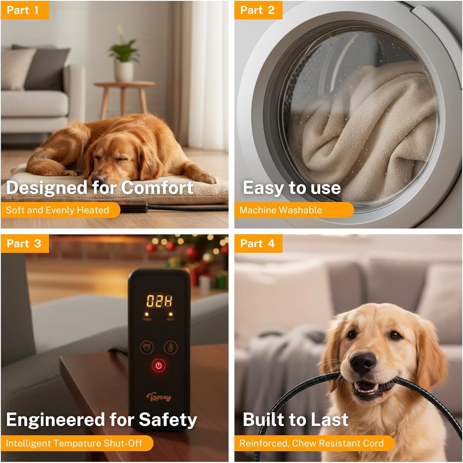 - ❤【Temperature Adjustable Function】Controlling the temperature of electric dog heating pad with the LED controller, it can adjust the temperature easily with 6 temperature settings ( 86-131℉/30-55℃) to accommodate your pets.