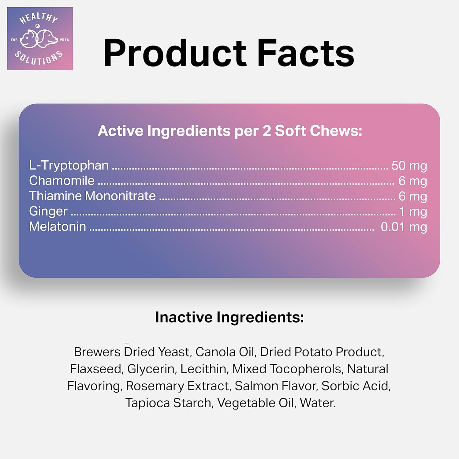 - ๐ธ VETERINARIAN FORMULATED -- with Melatonin, Chamomile, Passion Flower, Thiamine, L-Tryptophan, and Ginger to help soothe sensitive stomaches.