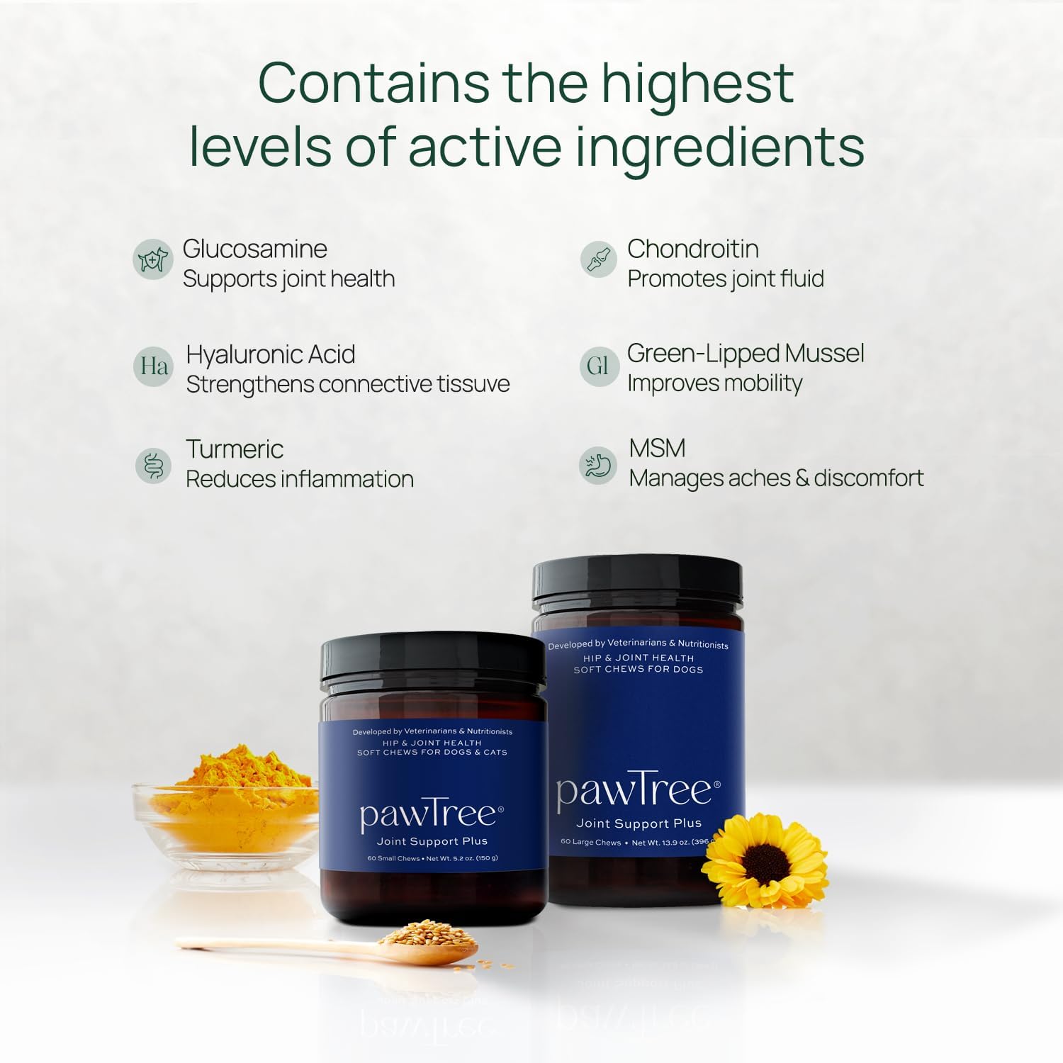 pawTree Joint & Hip Support Supplement for Dogs & Cats with Glucosamine, Chondroitin, MSM, Tumeric & Green Lipped Mussels - Vitamins & Health Essentials - All-Natural Mobility Soft Chews