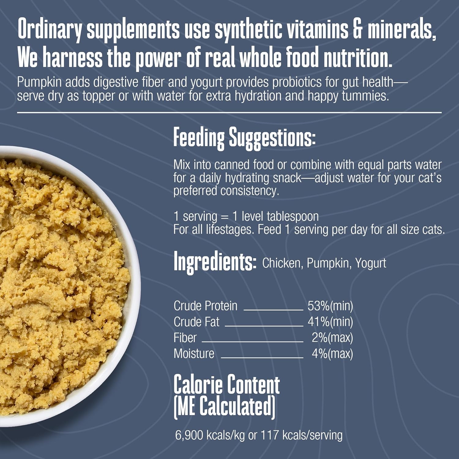 - NATURAL AND SAFE FOR YOUR PET: Whole Life Pet's Freeze Dried Cat Food Healthy Gut Daily Supplement is crafted with three simple ingredients—chicken, yogurt, and pumpkin—ensuring your cat receives premium cat nutrition. Packed with probiotics for cats, it’s a delicious way to support your furbaby's gut health!