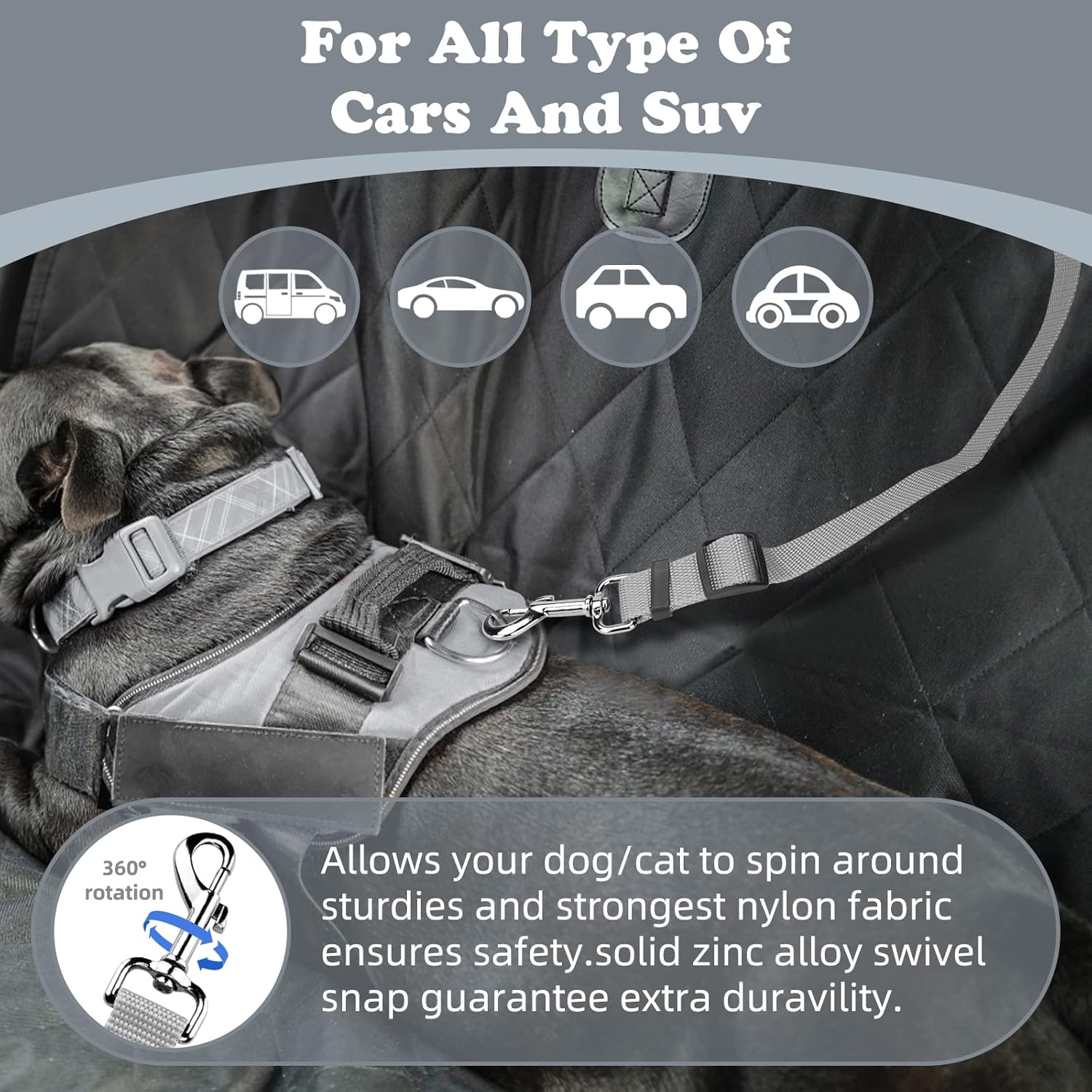 - EASY USE:The tangle-free nylon straps quickly and easily attaches to vehicle headrests. Safety strap is easily removed making it the perfect dog leash for your vehicle's back seat.