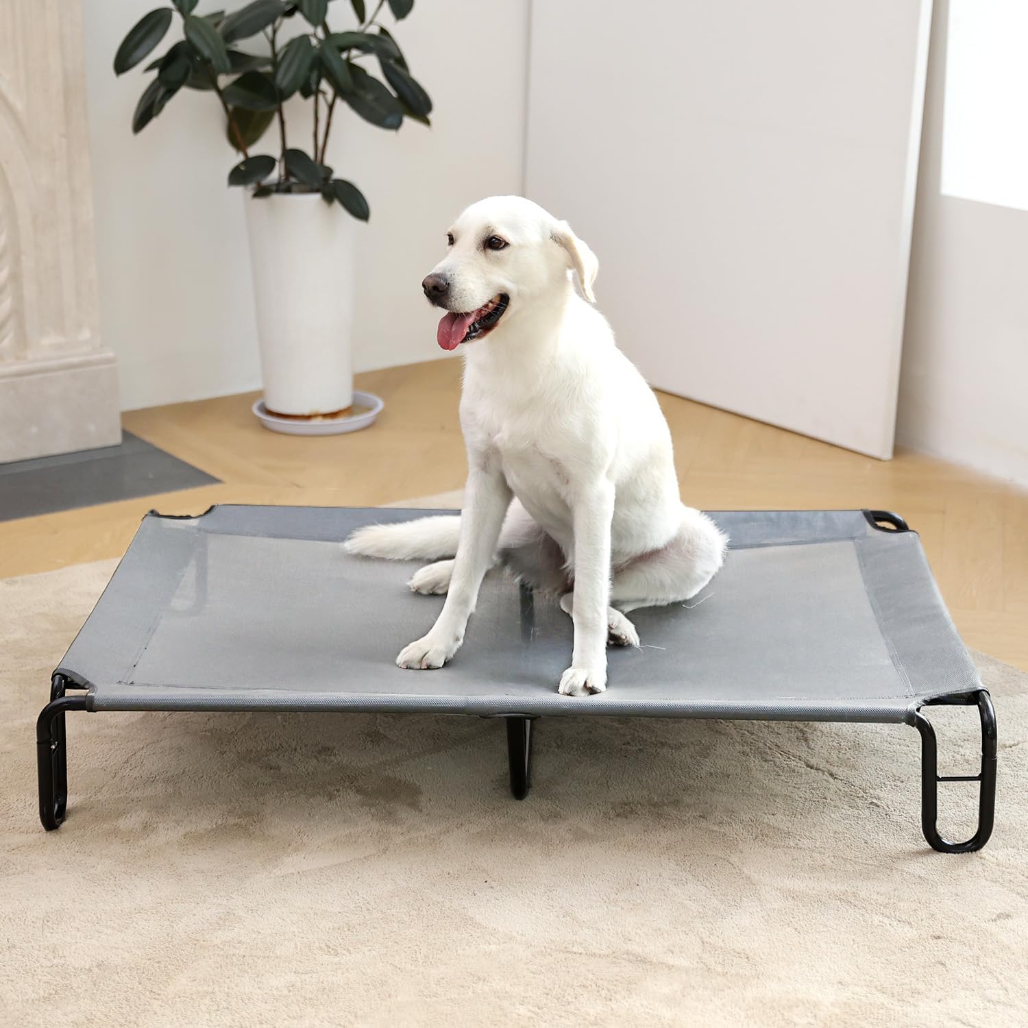 pettycare Elevated Outdoor Dog Bed - Dog Cots beds for Large Dogs XL, Waterproof Raised Dog Bed Easy to Assemble, Cooling Elevated Dog Bed with Teslin Mesh, Durable, Non Slip, Up to 85 lbs,Grey