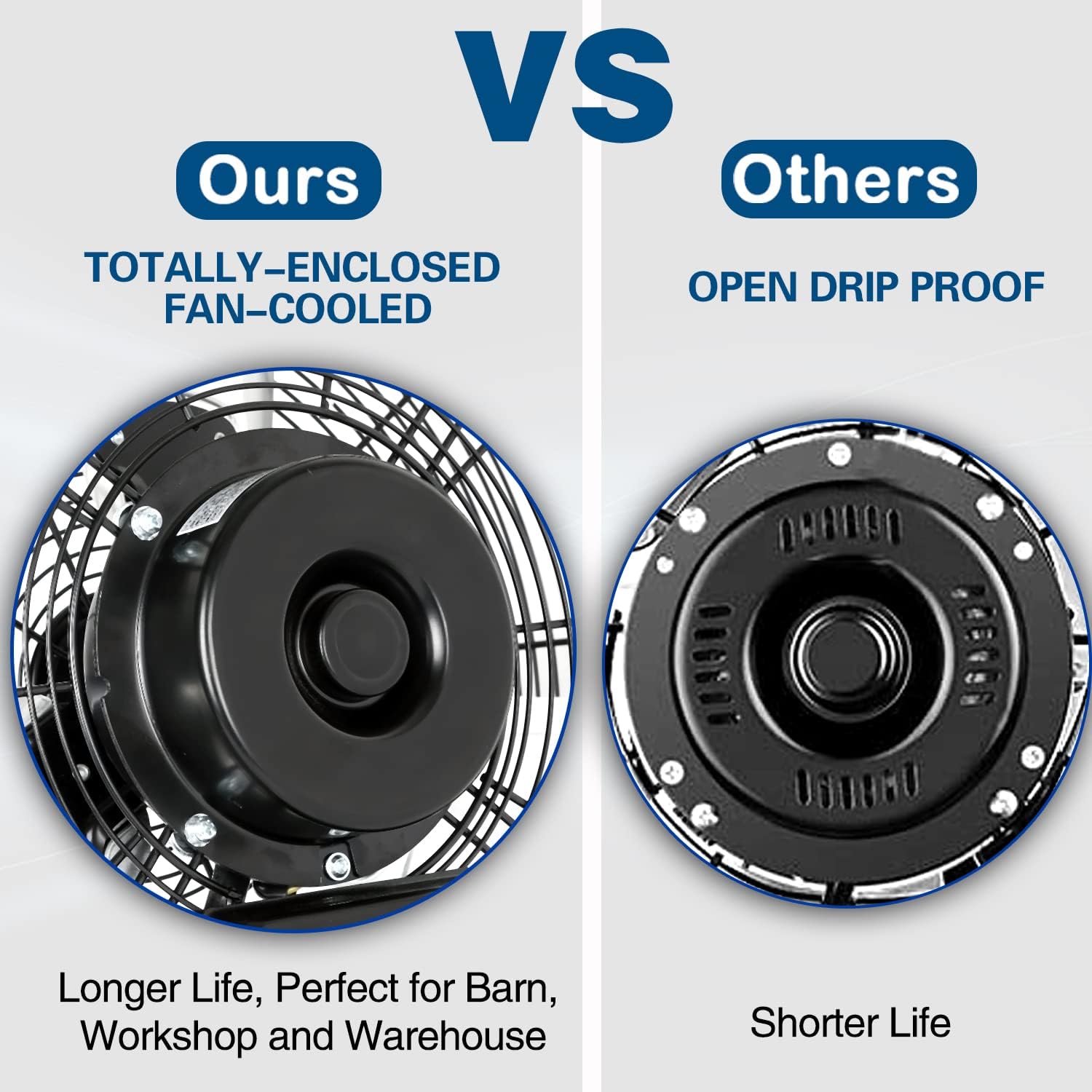 - 【Durable and Sturdy】: Featuring a fully enclosed ball-bearing motor and powder-coated steel construction, protects the motor from workshop debris and all other dust. With aluminum fan blades; OSHA compliant grilles; 6 ft. grounded three-prong power cord; our heavy duty commercial wall fan is a great unit for workshops, basements, and garages. Not graded for outdoor use.