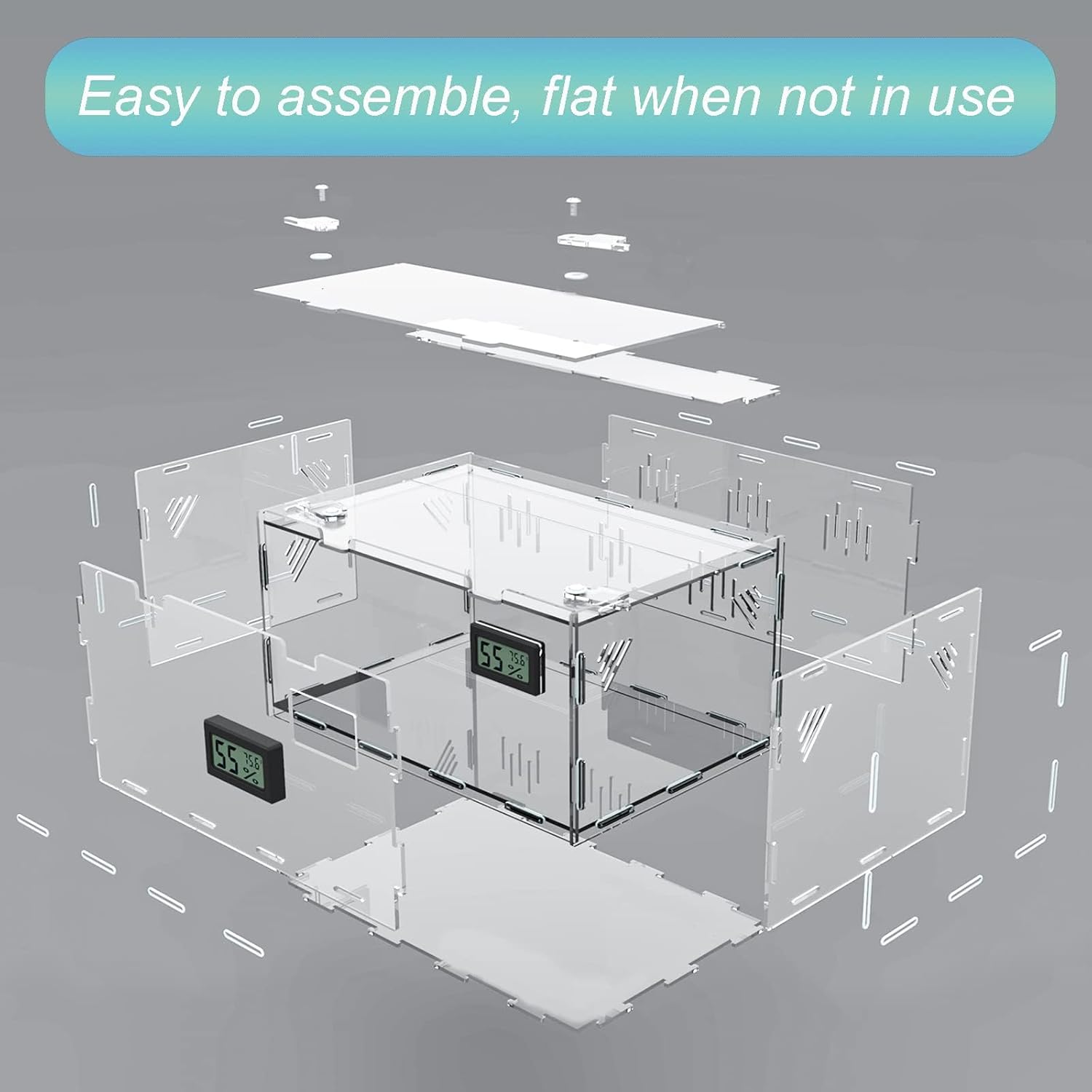 Reptile Terrariums, with Temperature Hygrometer, 15.7"x9.9"x7.1"Acrylic Reptile Breeding Box Terrarium Cage Tank for Small Reptile Insect Home Office