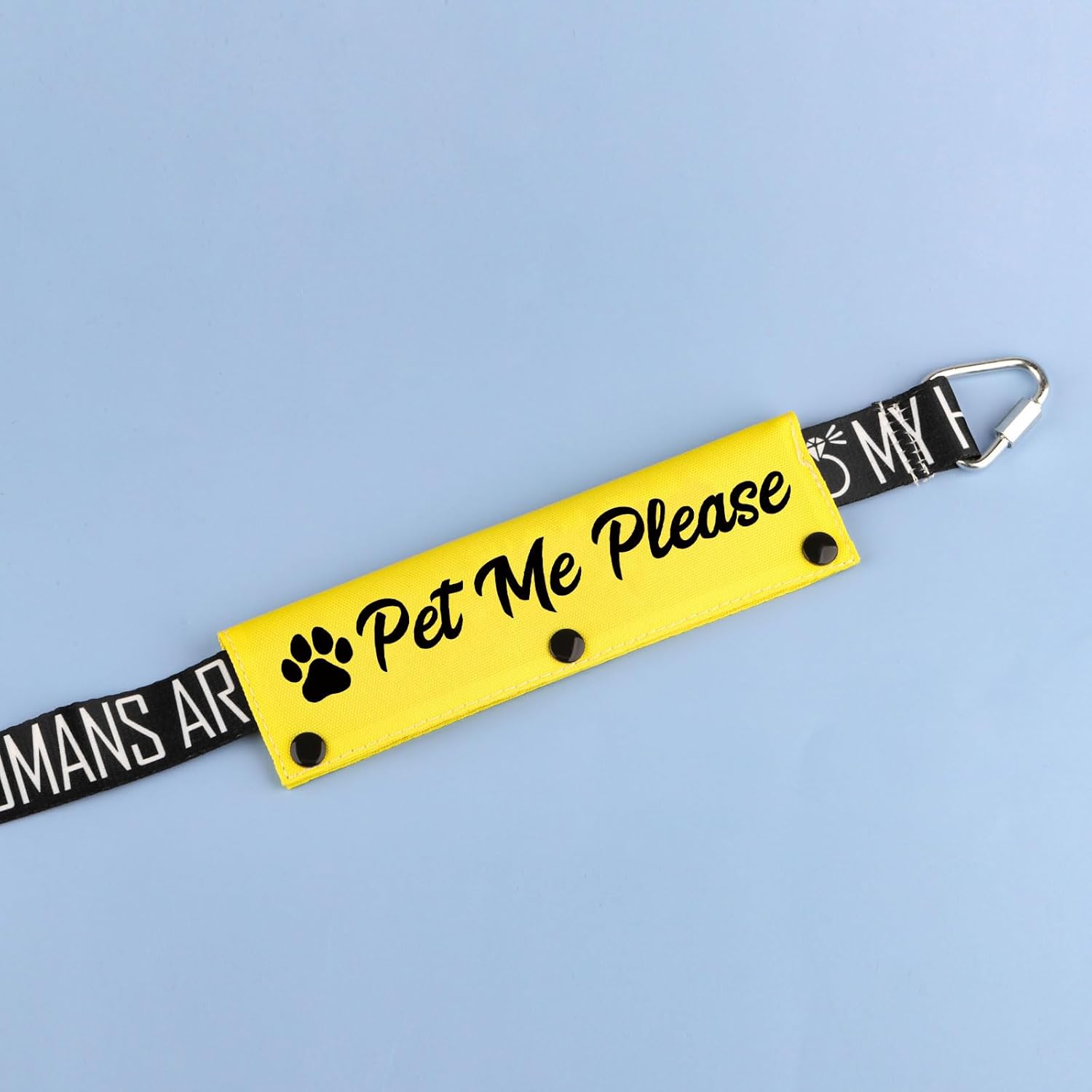 Funny Dog Leash Sleeve Pet Me Please Dog Leash Wrap Wrap Alert Hanging ID Patch Tag Pet Birthday Gift(Pet Me Please) (Pet Me Please-YE Sleeve)