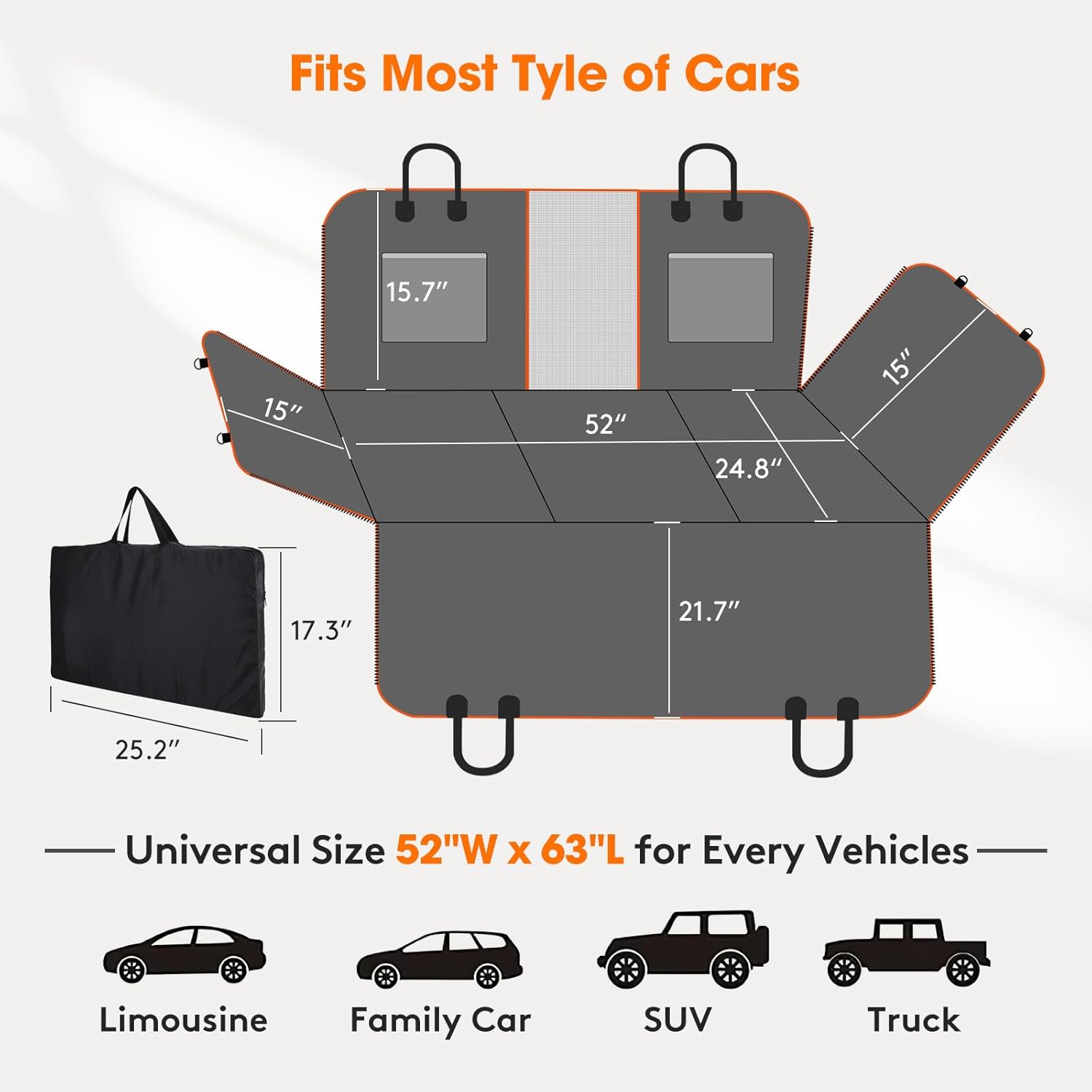 - 【Multifunctional Seat Cover】When you get the MIXJOY Upgraded dog seat cover, you will enjoy this 4 styles and also helps to protect the leather seat. It can also serve as a sleeping pad or for other uses. Can be easily converted dog hammock style, cargo liner style, picnic seat cover blanket. And the universal size of 52"W x 63"L back seat dog cover for car to be used in family cars, trucks and SUVs.The back seat protector for dog is great present for every pet lover.