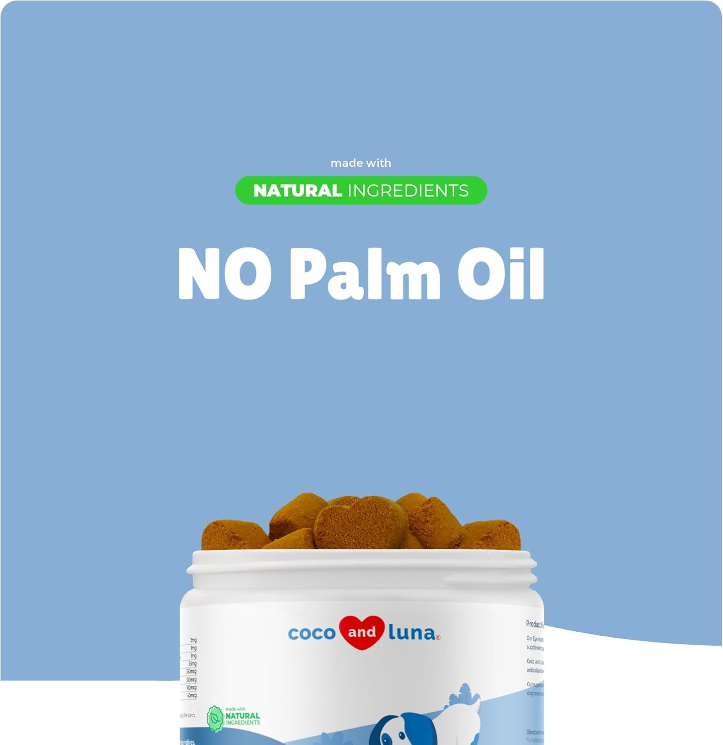 - Eye Health Support for Dogs- Coco and Luna Eye Health Support contains natural antioxidants, vitamins, and cod liver oil to promote eye health for dogs.