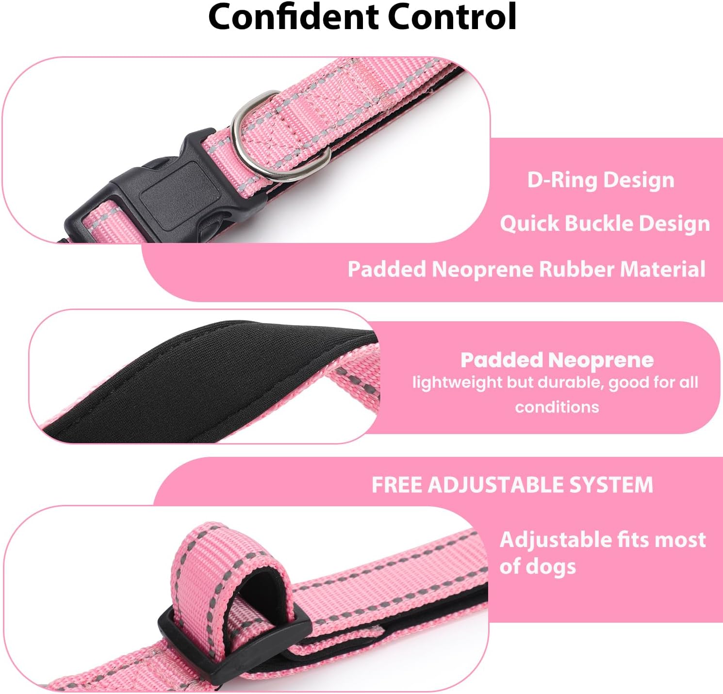 Reflective Dog Collar Padded with Soft Neoprene Breathable Quick Release Basic Dog Collars for Large Dogs Pink Girl