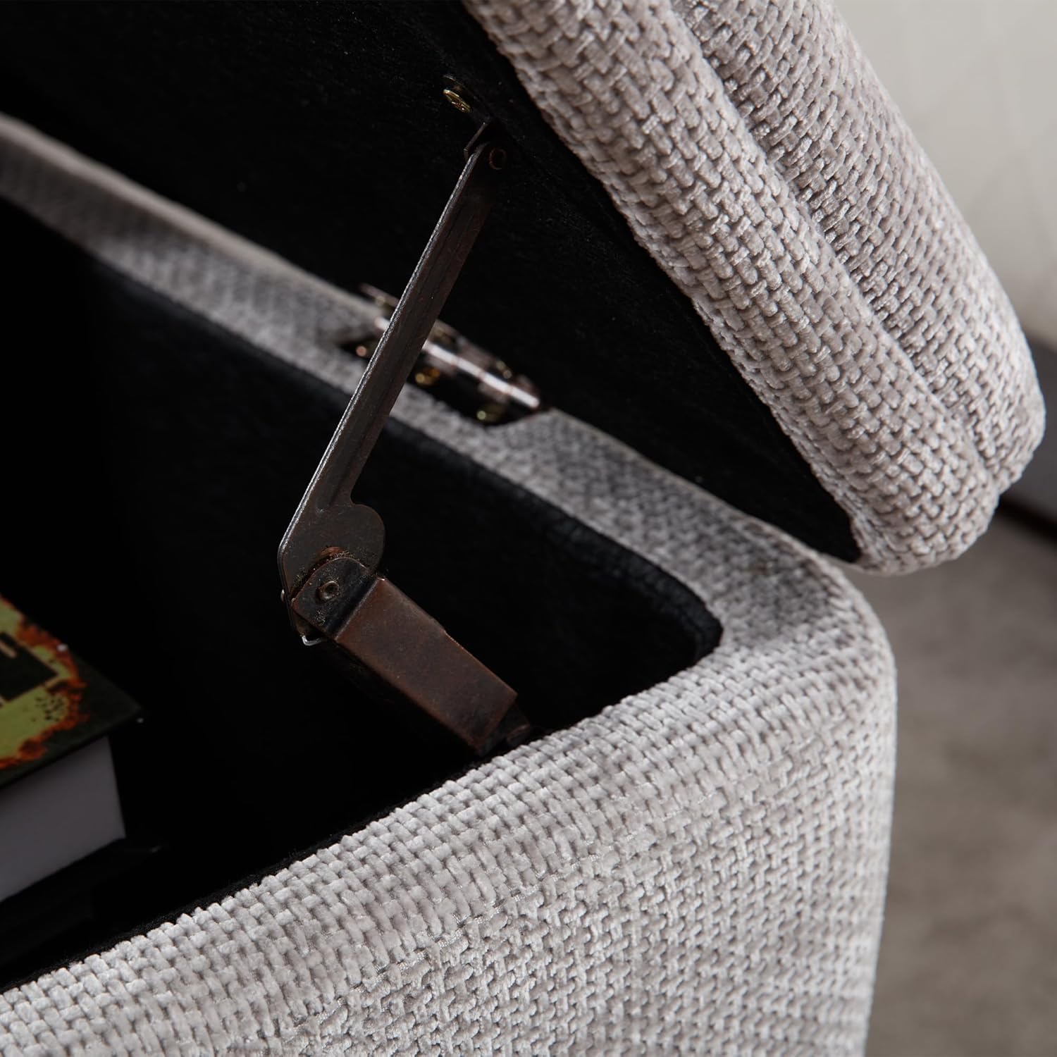 - SIZE DEMENSION AND STORAGE SPACE-Overal size:17.75"D×45.25"W × 18"H; Internal storage space: 14.5"D×42"W × 10.5"H. Not only is it an elegante furniture that can enhance aesthetics, but it is also an large additional storage space. In addition, it slows down the speed of lid closure and increases usage safety, especially when used as a storage stool for children's toys