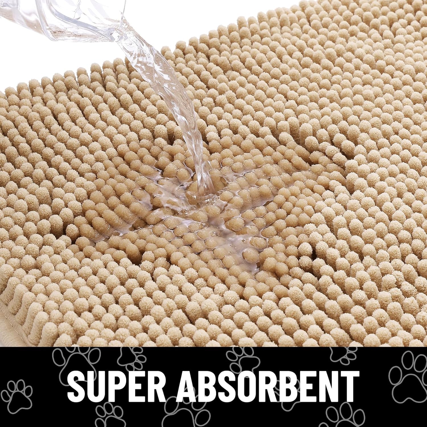 Smiry Dog Door Mat for Muddy Paws, Absorbent Dirt Trapper Non Slip Quick Dry Washable Chenille Mat for Mud Dogs, Entry Rug for Indoor and Outdoor (47x32 Inches, Beige)