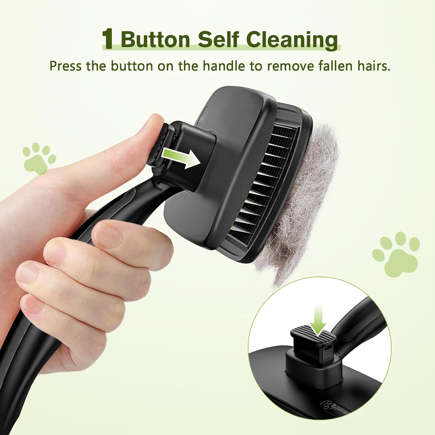 - SELF-CLEANING MECHANISM : The slicker brush features a unique self-cleaning mechanism that allows you to easily removes hair from the brush with just the push of a button.