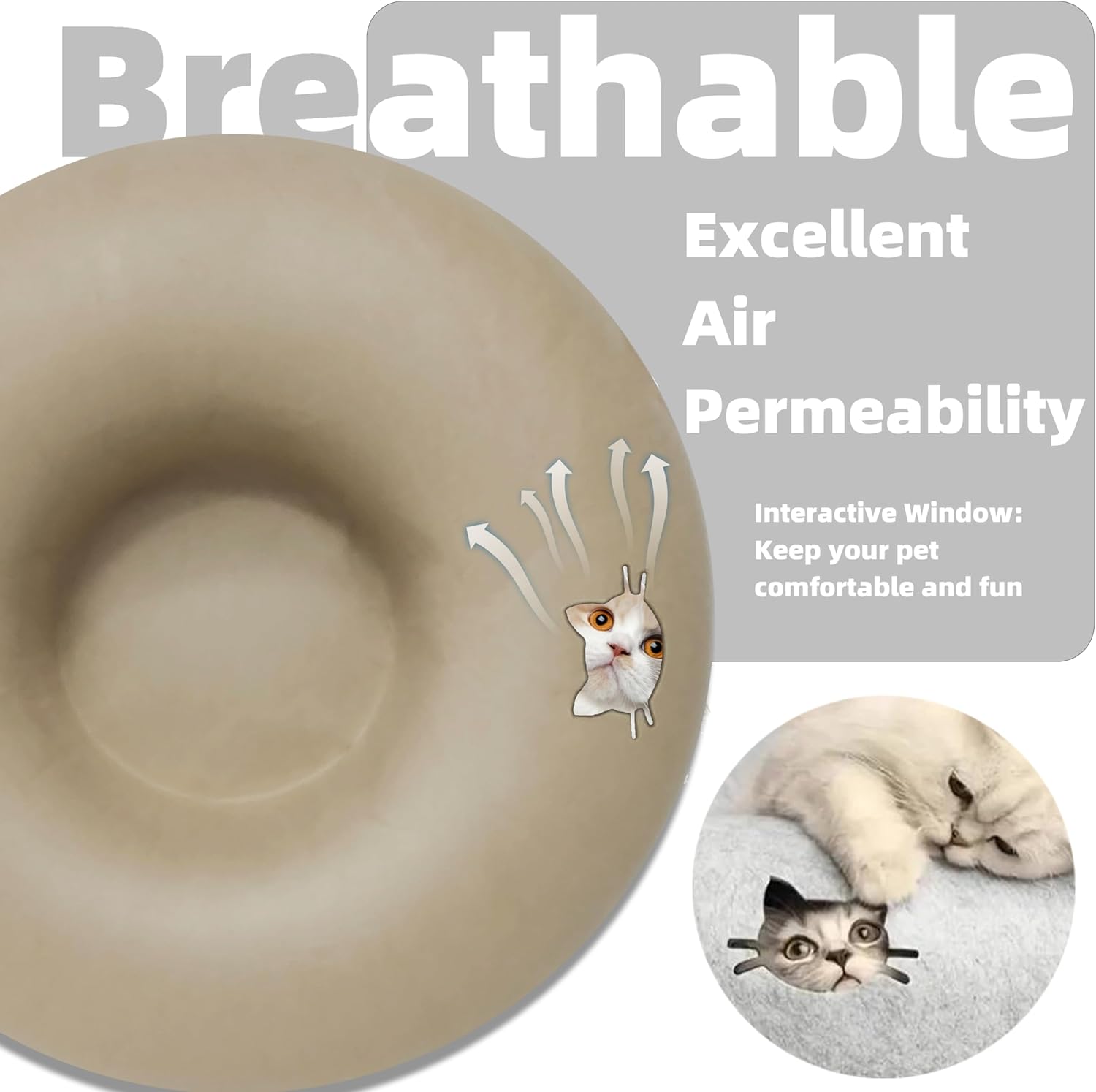 Donut Cat Tunnel Bed Peekaboo Cat Cave for Large Cats Up to 30 Lbs, Kitty Interactive Playing Tent House for Multiple Cats,Detachable,Scratch Resistant (Beige, Large - 24 Inch Diameter)
