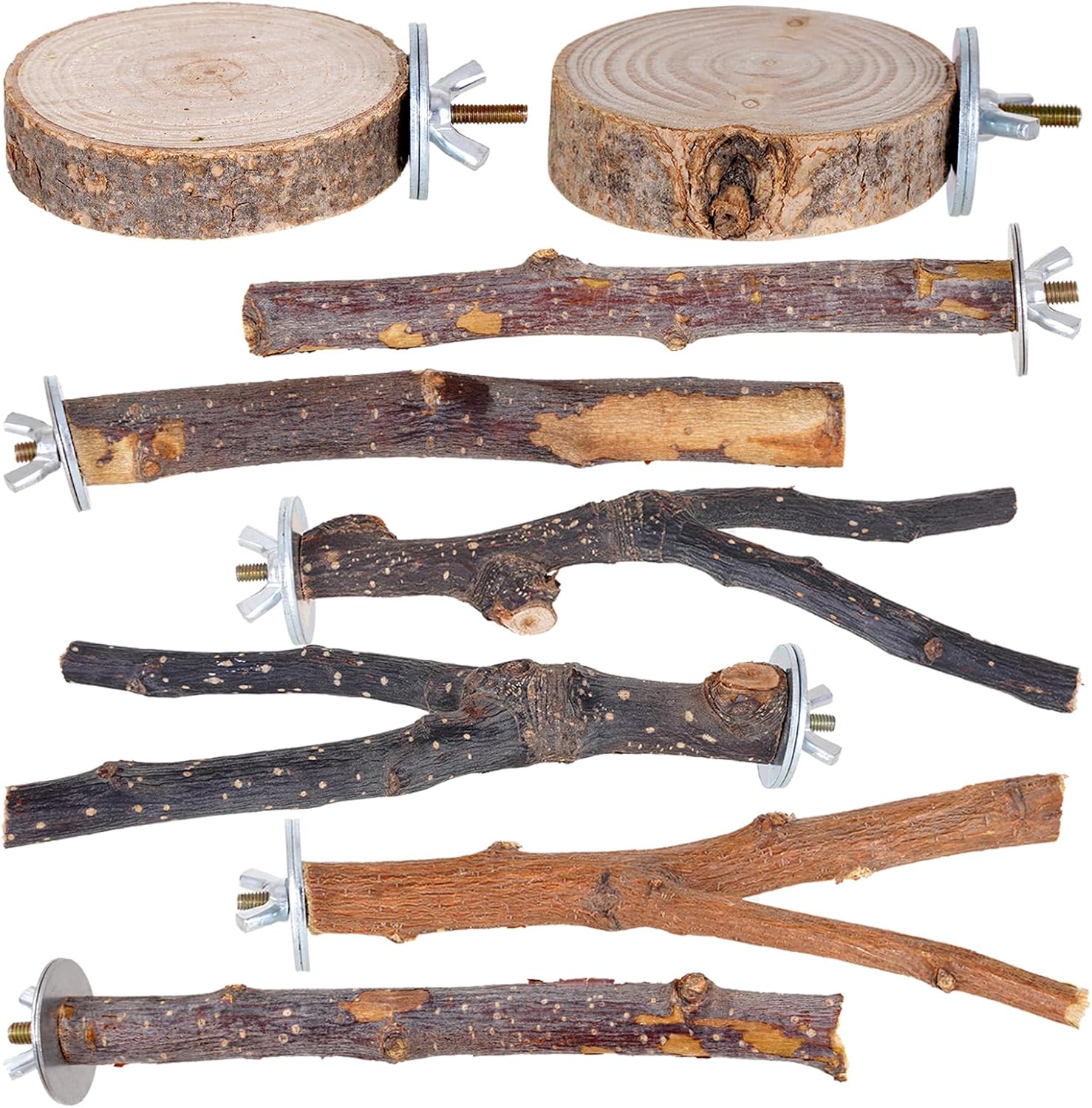 Libiline 8 Pieces Bird Perch Natural Wooden Parrot Perch Stand Fork Toys Hanging Multi-Branch Perches Platform Hammock Swing Toy for Macaws, Small Parakeets, Conures, Budgies, Finches (A-Color, Mix)