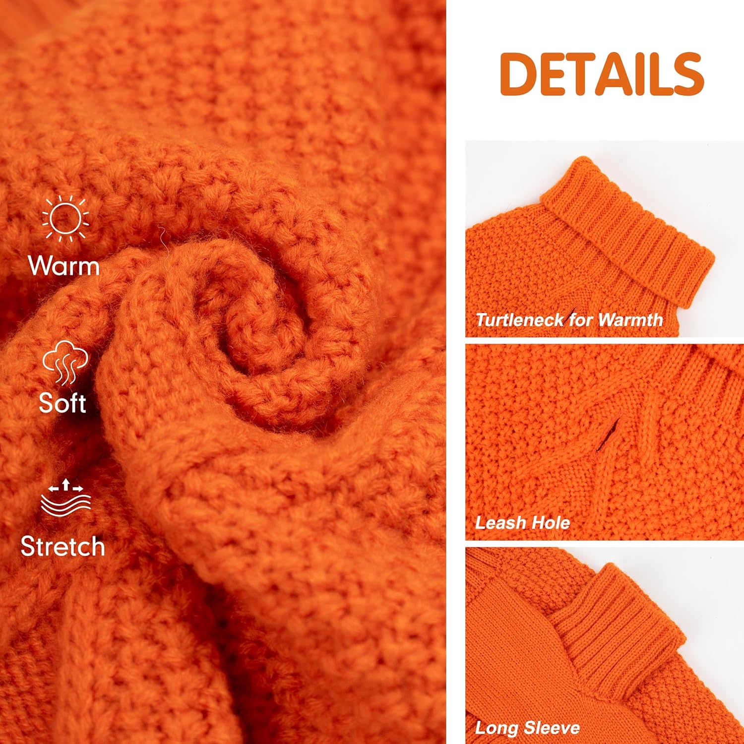 cyeollo Dog Sweater Pullover Turtleneck for Dogs, Classic Knitwear Fall Winter Cold Weather Dog Clothes Warm Pet Apparel Small Medium Large Pet Sweaters, Orange L