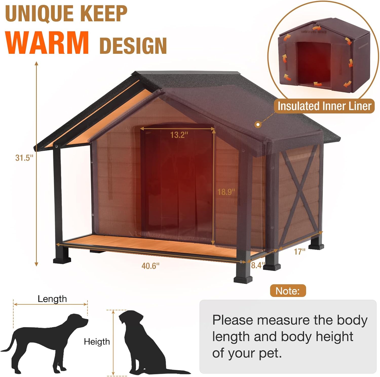 - 【Super Large Dog House】Oversize: 40.6"(L)×34.3"(W)×31.5"(H), Provides super large space for small, medium, large, and extra-large dogs.
