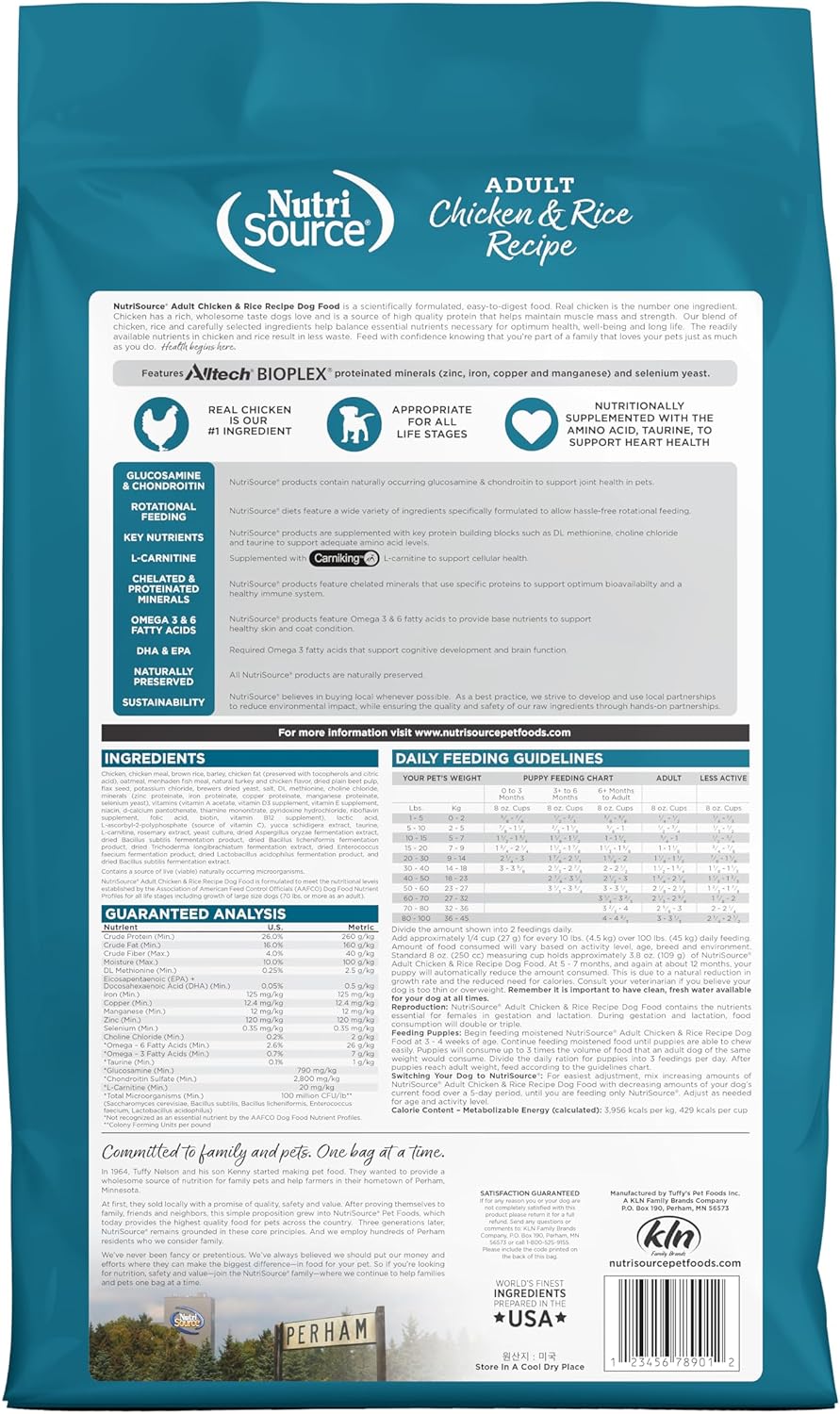 - As a member of our grain inclusive series, NutriSource Chicken and Rice Dry Dog Food is formulated to meet AAFCO guidelines for all lifestages