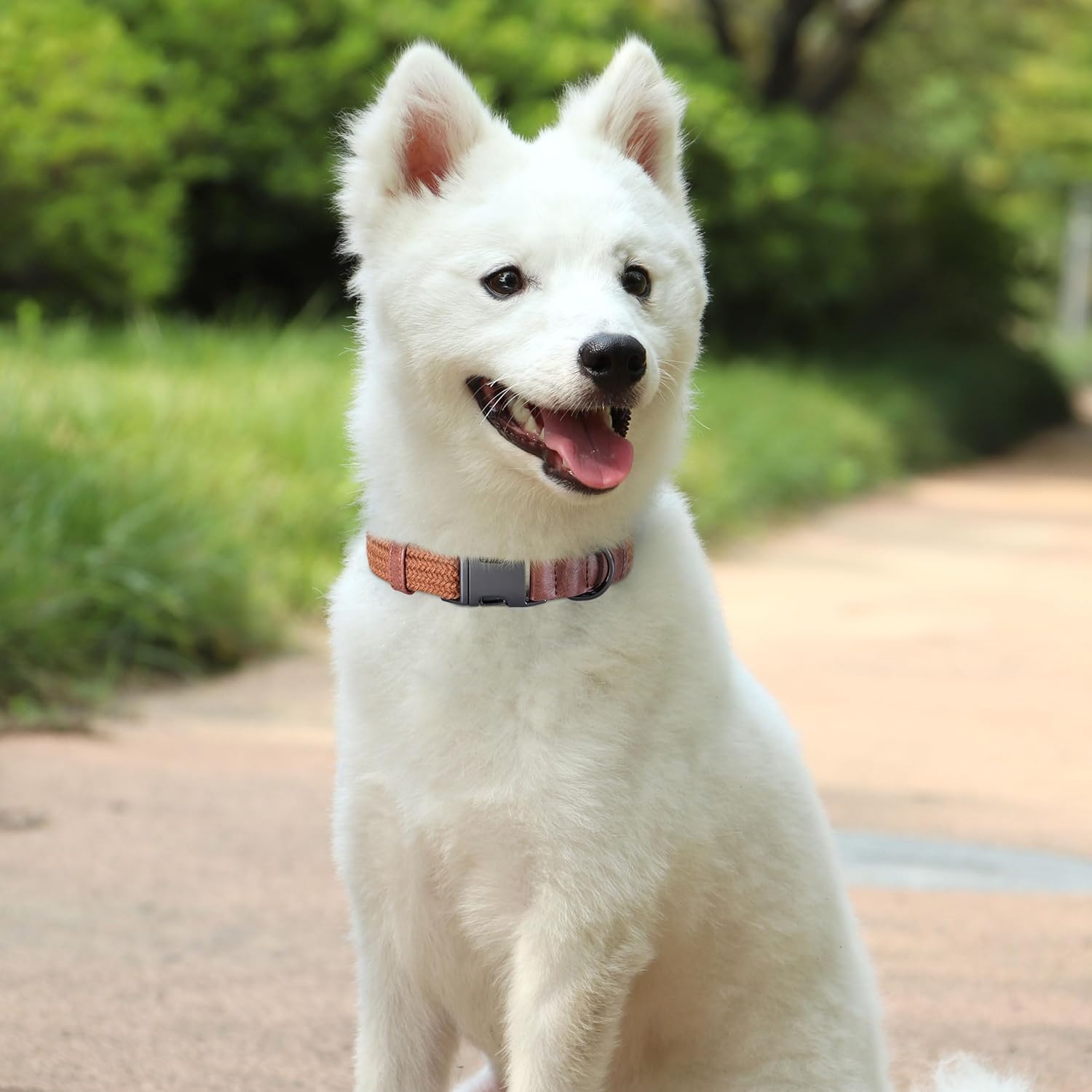 PET ARTIST Soft Cotton Dog Collars for Large Dogs in Rustic Brown, Simple Dog Collar with Quick Release Metal Buckle & D Ring, L Size (15-23")