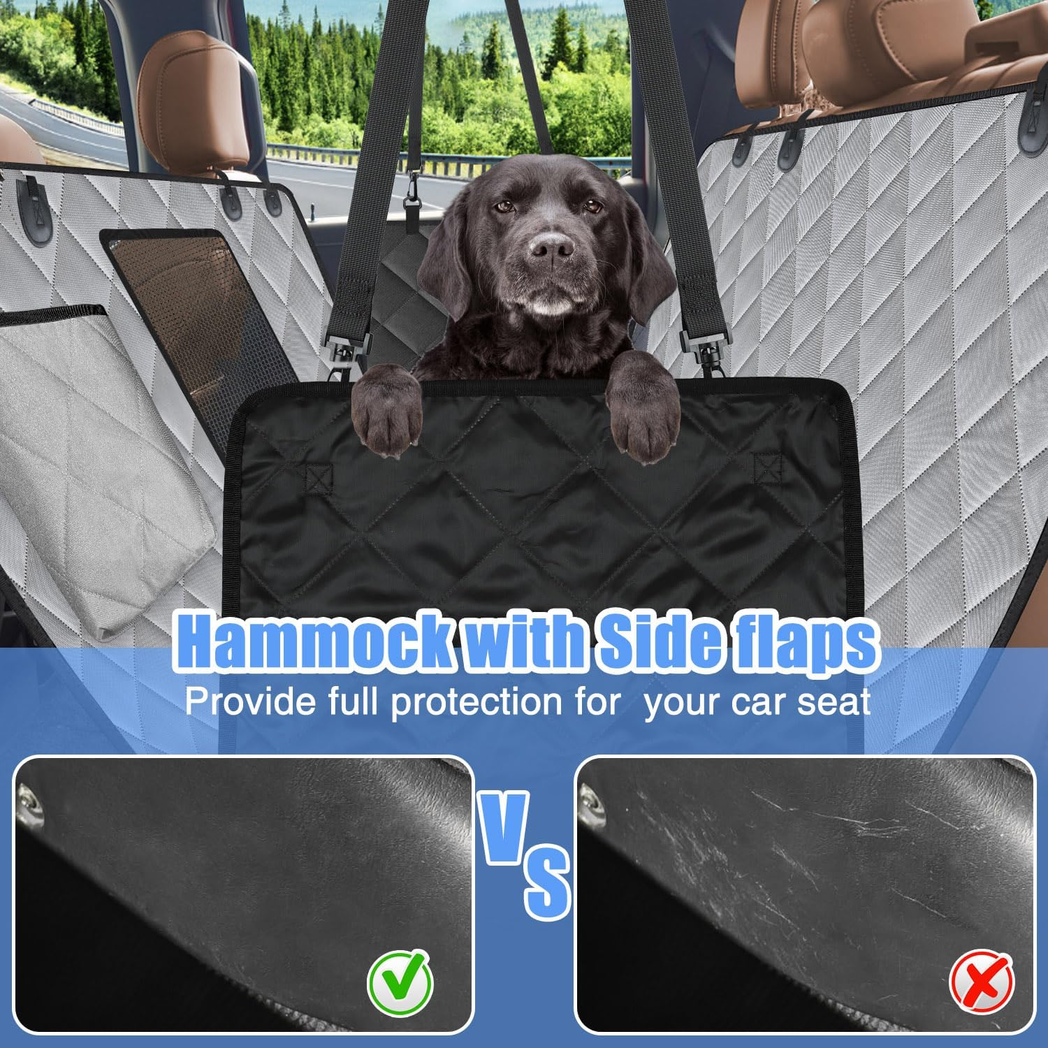 - ✅【ANTI-SLIP BACKING】Made with 600D Oxford fabric and PVC material for extra comfort and durable.The Slip-proof PVC backing and the new seat anchors design makes the cover stay in place when you are driving, guarantee the safety on your lovely pets