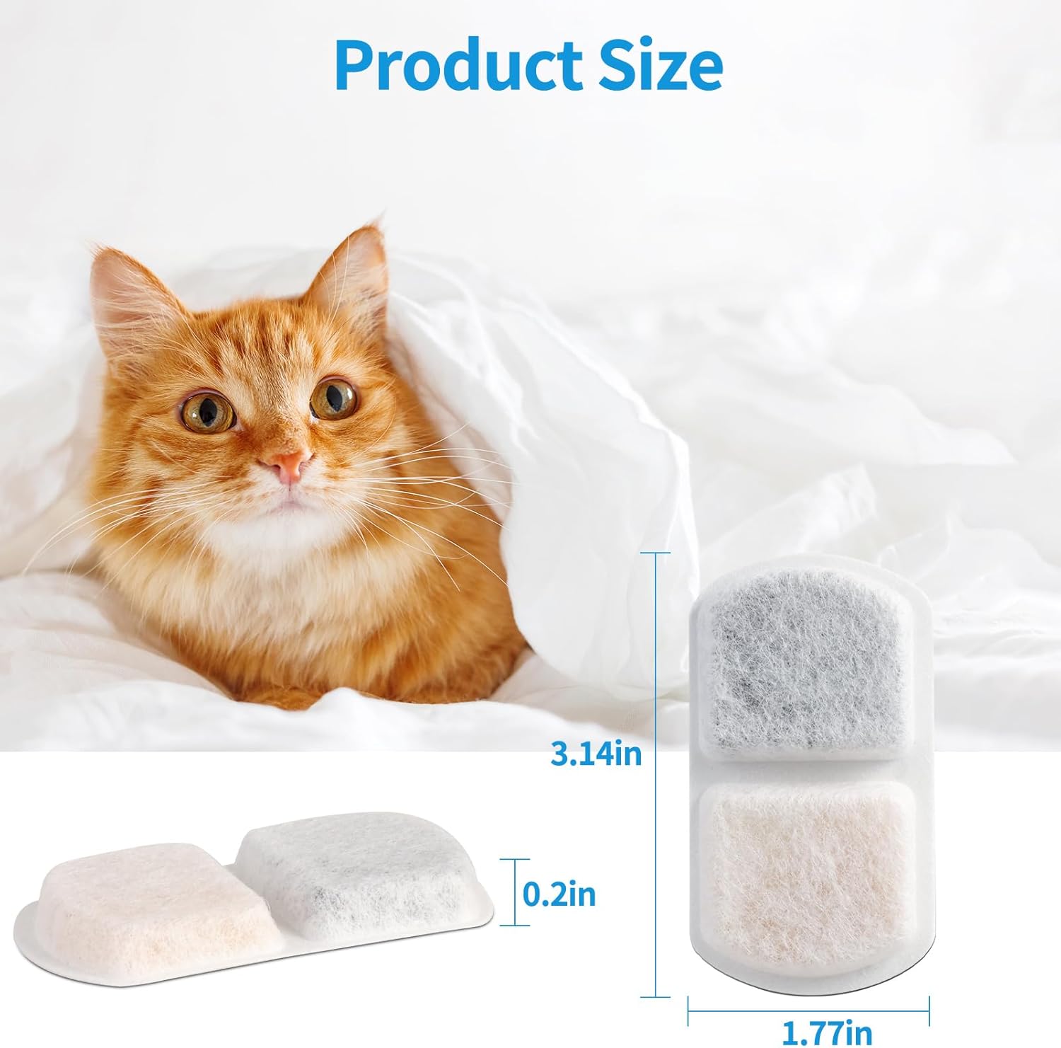 - Specification: There are a total of 10 replacement filters and water pump sponges in the box, which can be used for approximately 5-6 months.(Filter size: 3.9 x 3.9 x 0.4 inch,Sponge size: 1.5 x 1.1 x 1.0 inch)