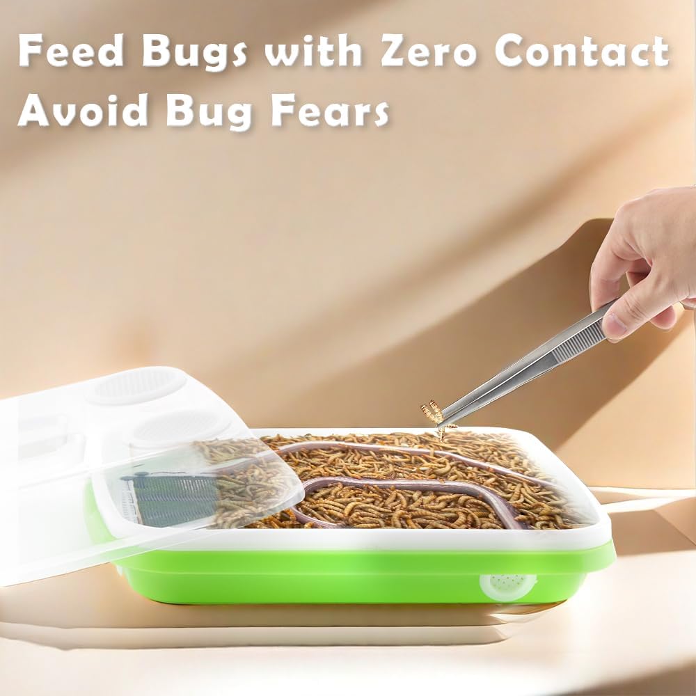 - PACKAGE: Including 1 pack mealworm breeder with 2 pcs insect tweezers