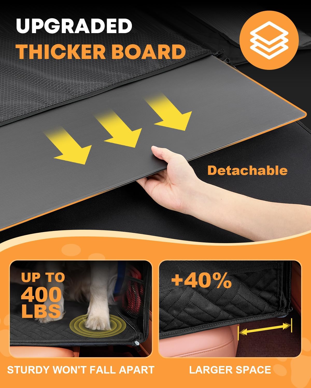 - REINFORCED HARD BOTTOM: Features 2 upgraded removable thicker PP plates, Kohree hard bottom car seat cover of 900D Oxford fabric, is designed to resist breaking. This car back seat extender offers maximum space and sturdy support for small size dogs.