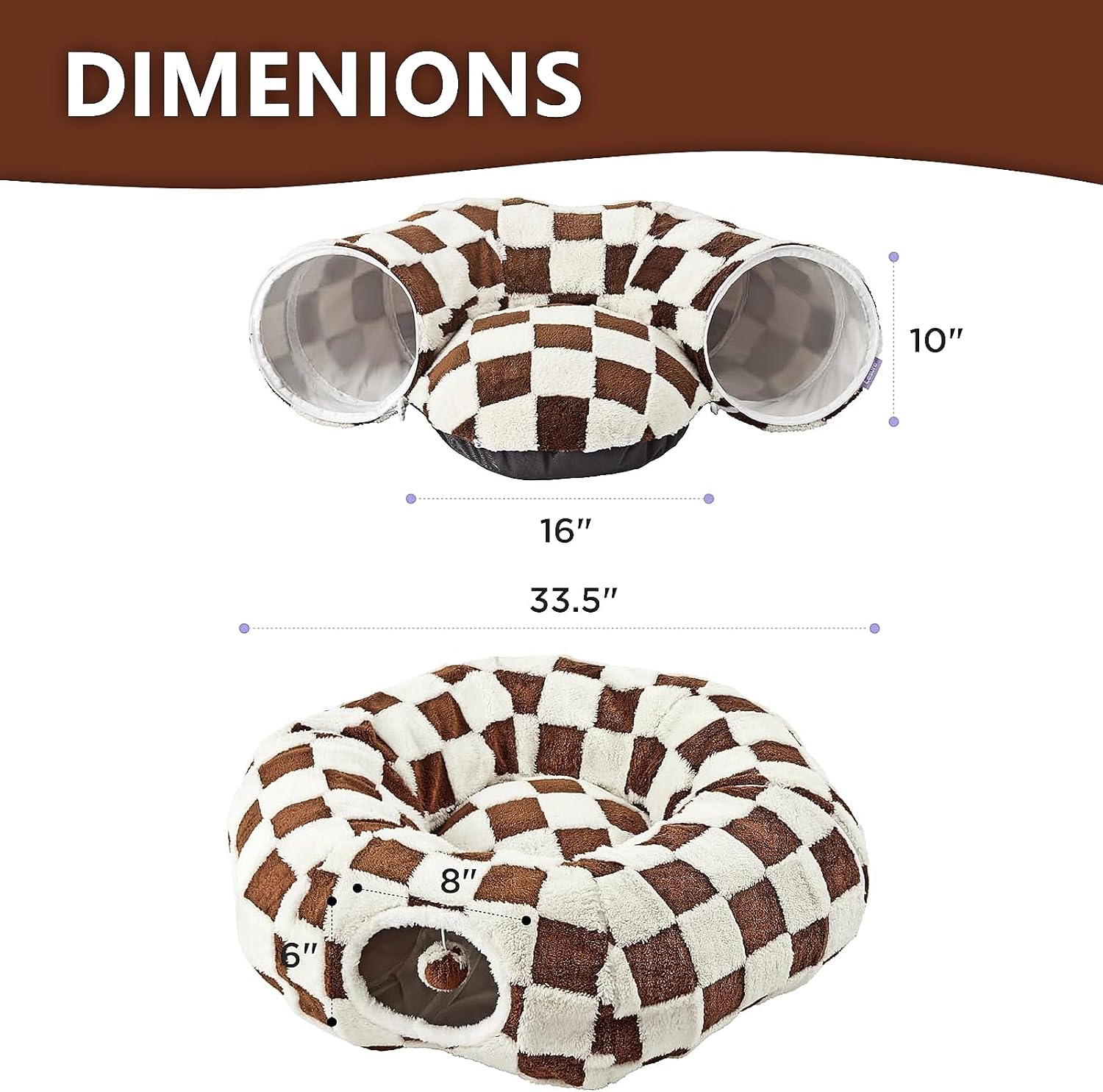 Cat Tunnel Bed with Washable Cushion for Indoor Cat, Donut Cave Tube Toys for Kitten Puppy Rabbit, Brown
