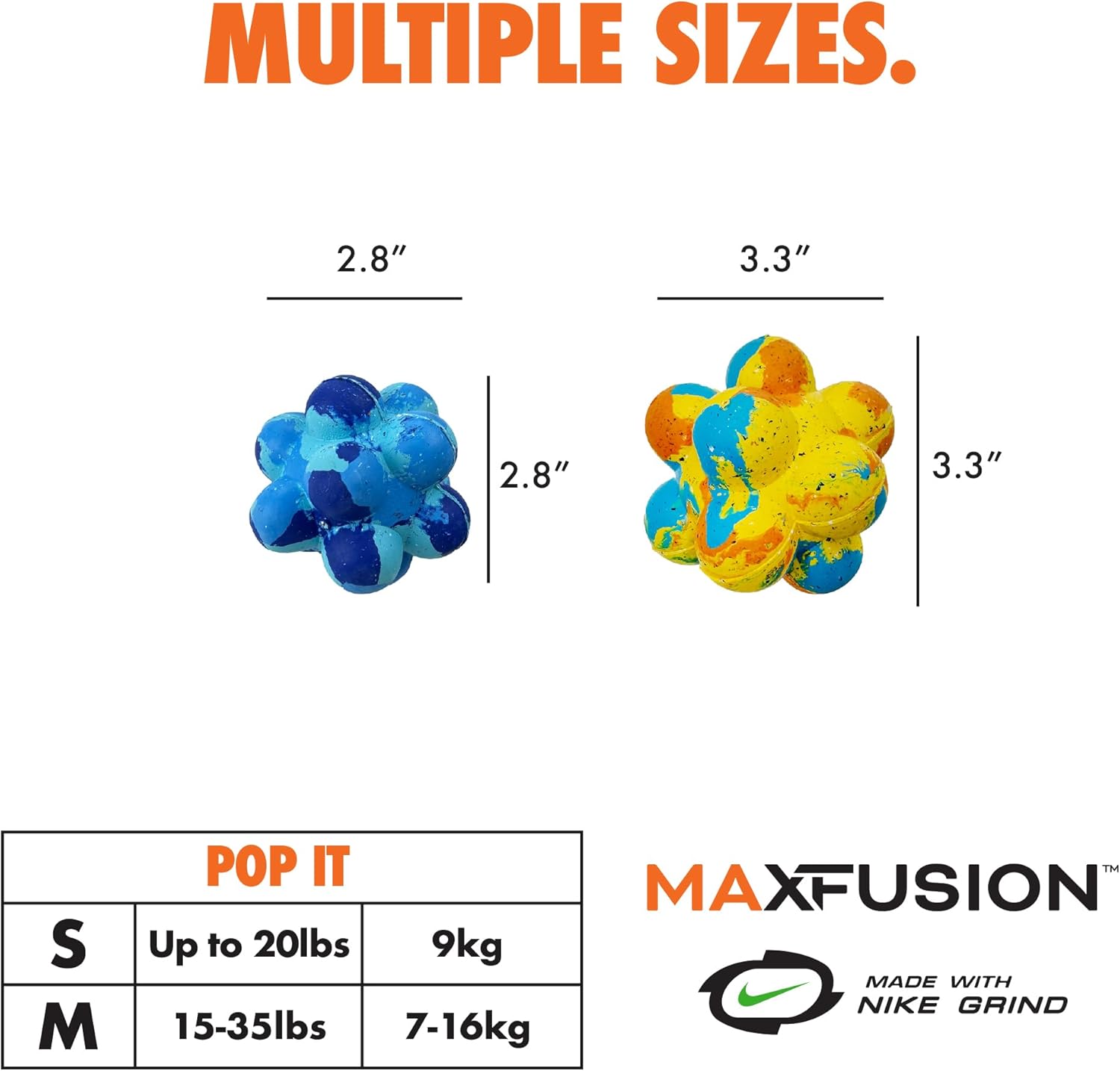 Max Fusion with Nike Grind, Arlee Pop It Dog Toy, Chew Toy for Play, Fetch, Tug, M