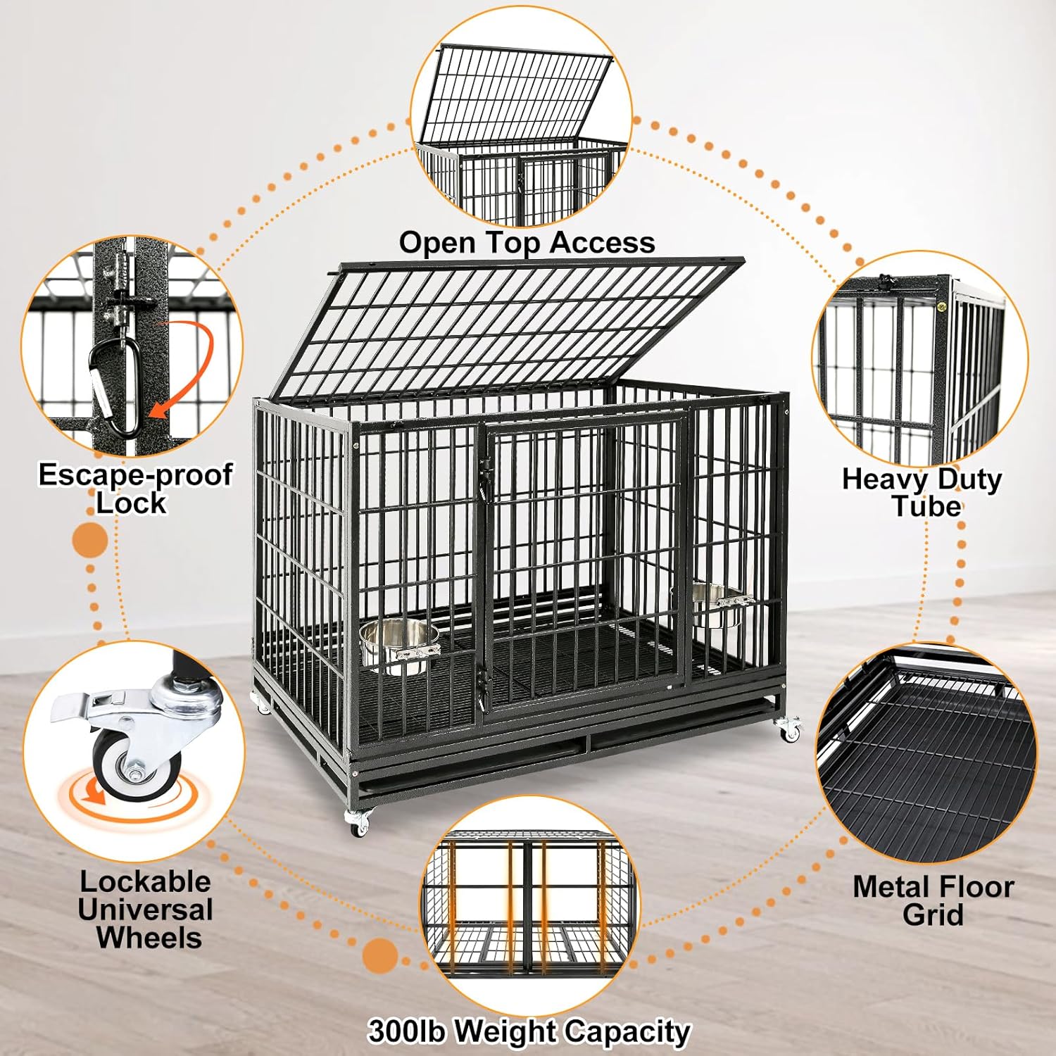 - Convenient Double Doors Access: The 48 inch large dog kennel indoor feature a top access and front door. The front doors allow for flexible feeding and straightforward access, Top open make it convenient for you to interact or train with your dogs