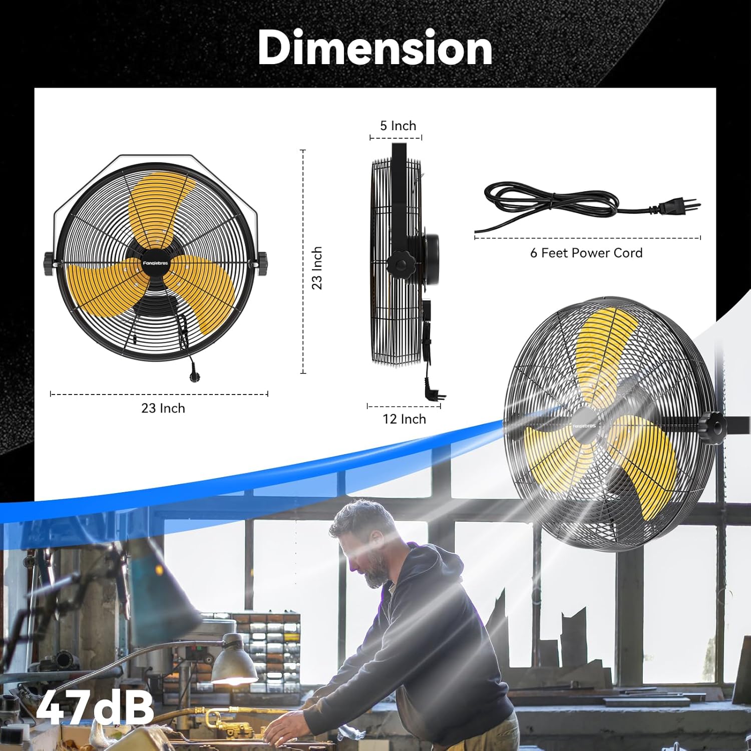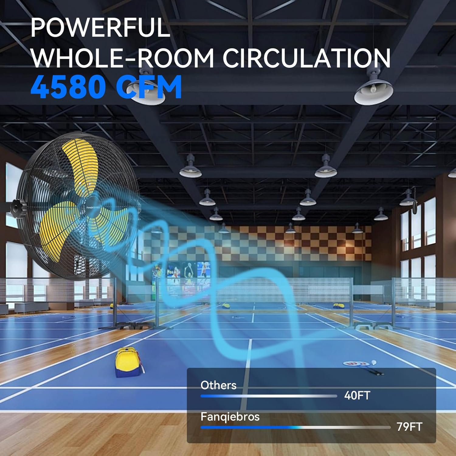 - 𝐋𝐨𝐰-𝐍𝐨𝐢𝐬𝐞 𝐃𝐞𝐬𝐢𝐠𝐧 - The heavy-duty wall fan operates at a high speed of 4580 CFM with a noise level of only 60dB, which is lower than the industry standard, creating a quieter gathering or working environment