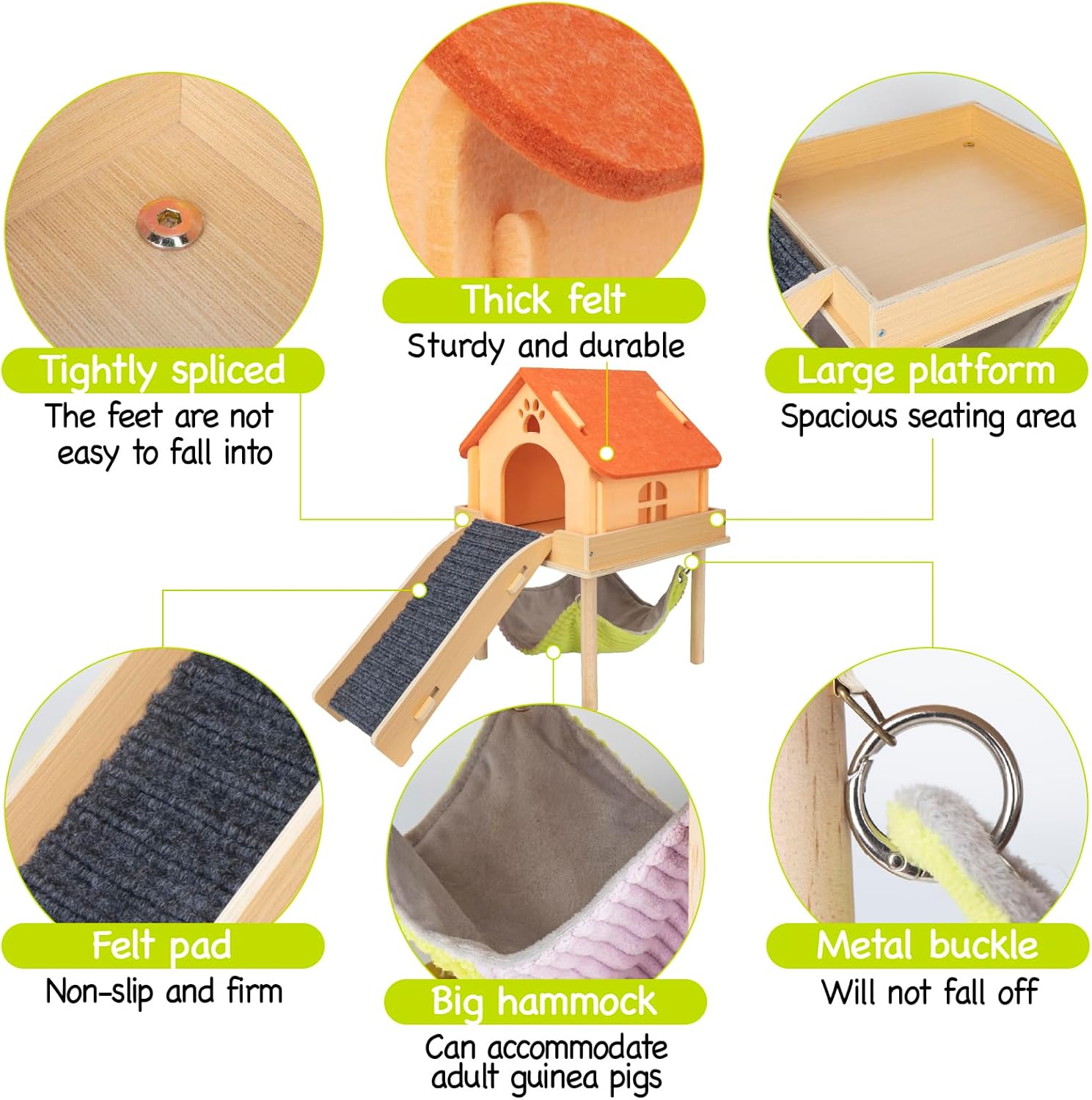 - 【NATURAL WOOD & THICKENED FELT】Our guinea pig cage accessories are made of natural wood.Not only are they durable,but they are also safe for your furry friends,ensuring they can enjoy activities without worries.The thickened felt is sturdy and not easy to break,and the included pet hair can be easily removed with the lint roller.