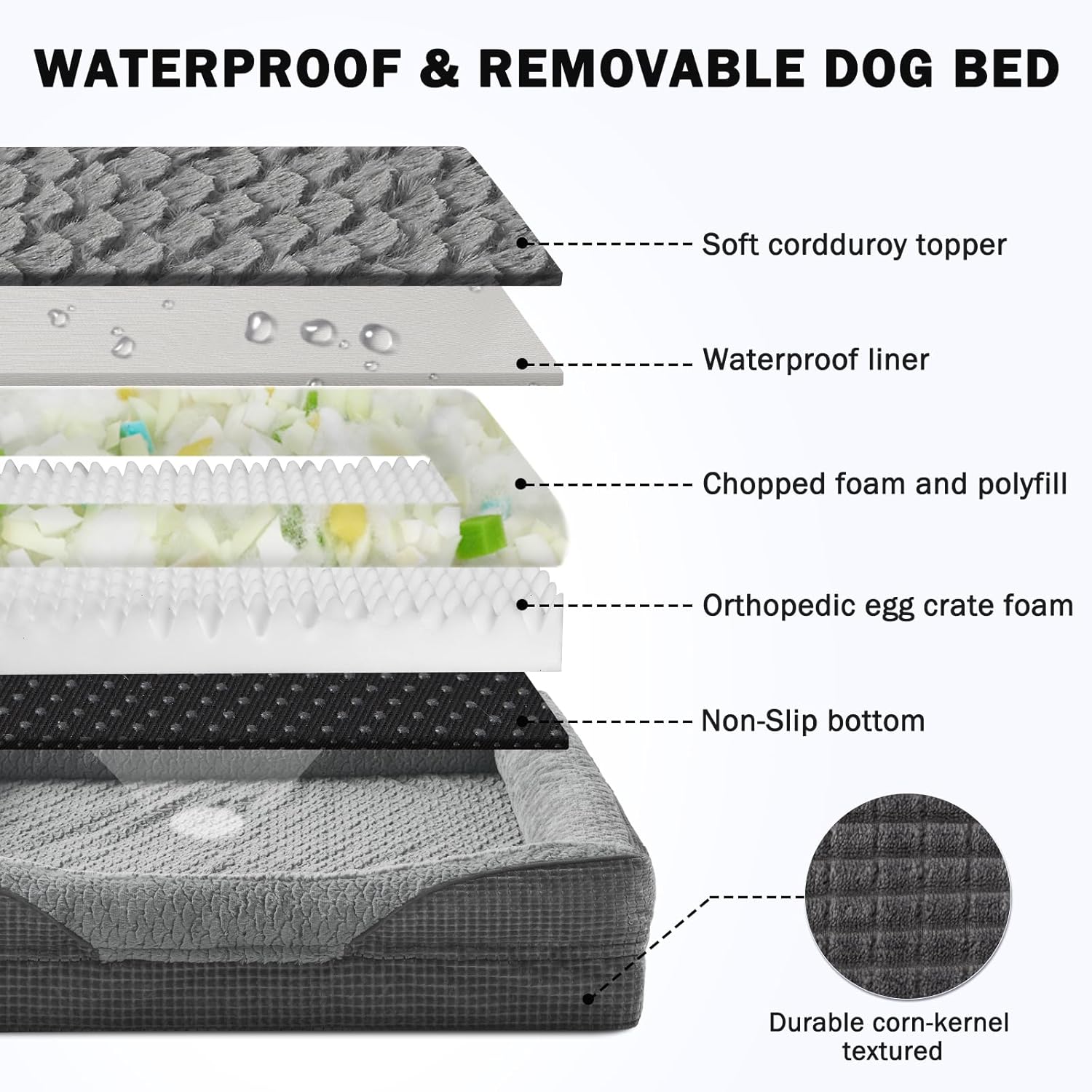 INVENHO Orthopedic Large Dog Bed, Egg-Crate Memory Foam Dog Couch with Washable Removable Cover, Waterproof Lining and Nonskid Bottom