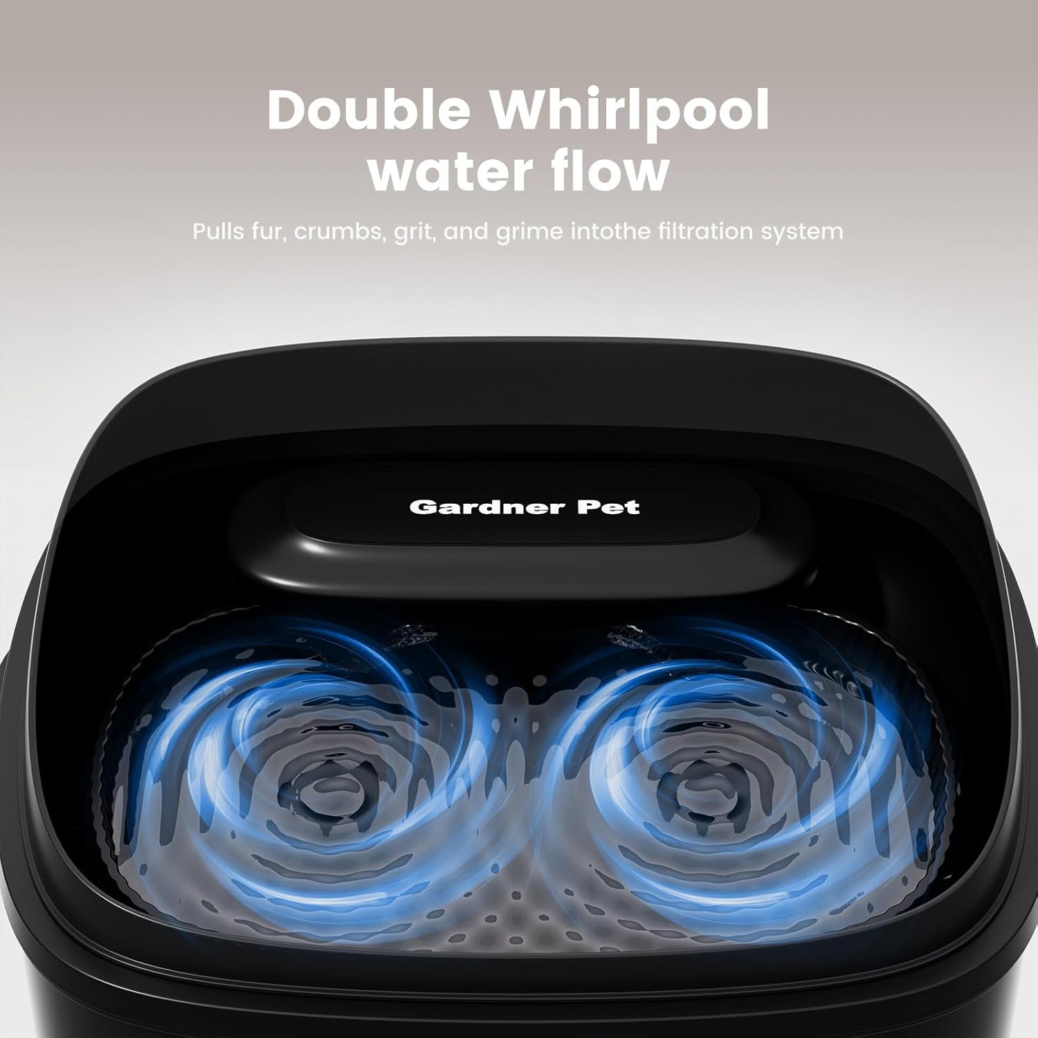 - Vortex Circulation Water Flow, Keep Water Flowing — The large dog water fountain, unique swirl design attracts pets to drink more, while keeping water oxygenated and moving to prevent buildup of hair, dust, or debris.