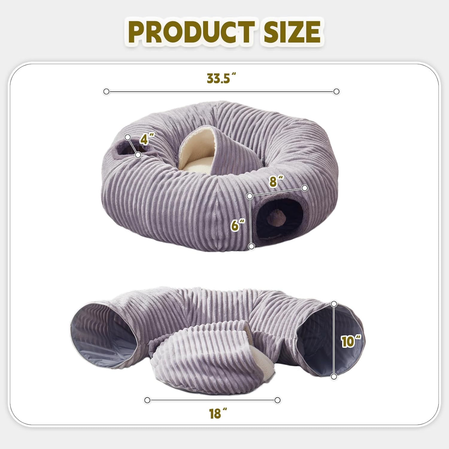 - Cat Tunnel & Cat Bed - cat play tunnel is a combination of cat bed and donut tunnel.It offers a hidden play area and a tranquil sleeping space all in one, to meet the needs and desires of pets to play,nap,run,hideaway,relax and sleep.