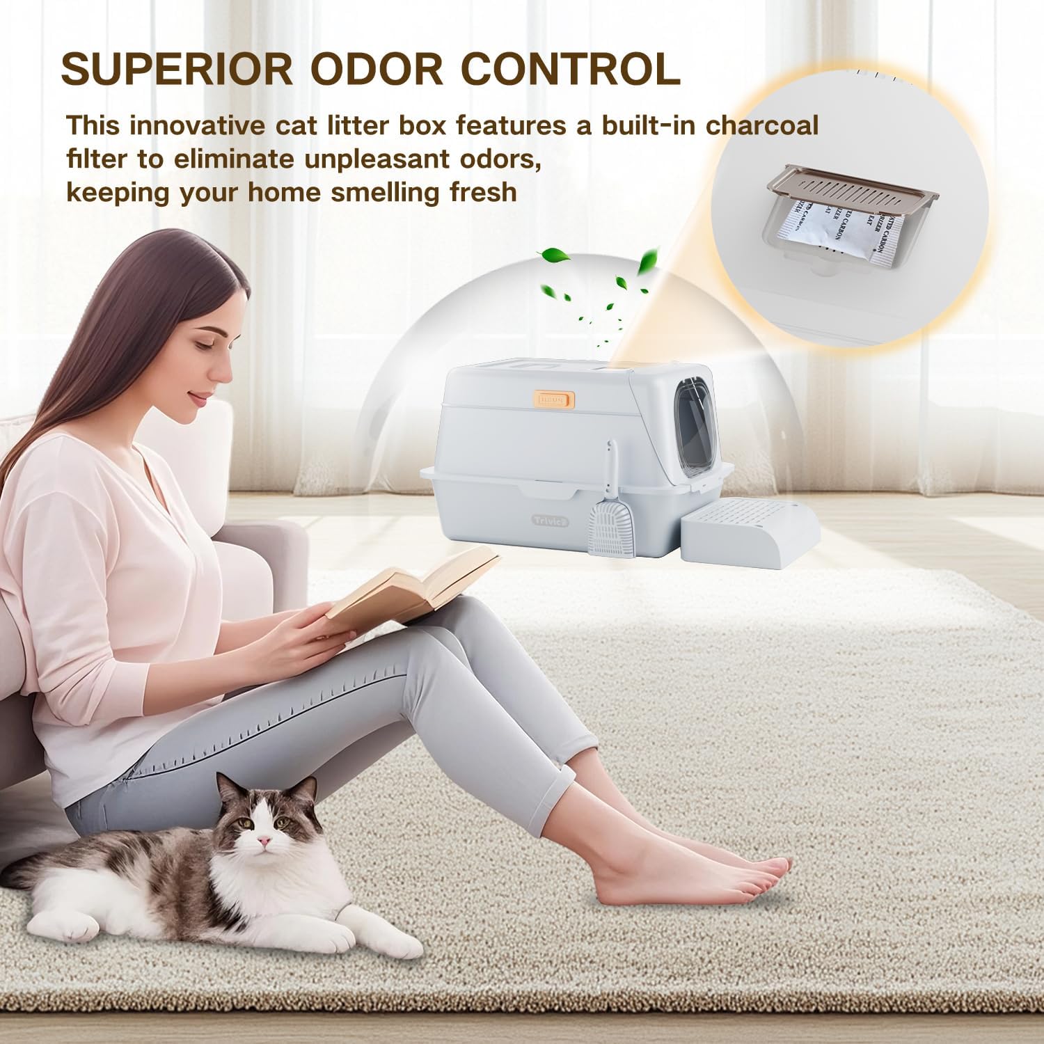 - Easy to Assemble & Clean – Includes All Accessories This large cats litter box comes with everything you need, including a charcoal filter, litter mat, Litter Trap Step and all necessary fasteners. Simple installation takes just minutes, and the smooth stainless steel base resists sticking and residue. Less time cleaning, more time playing with your pet.