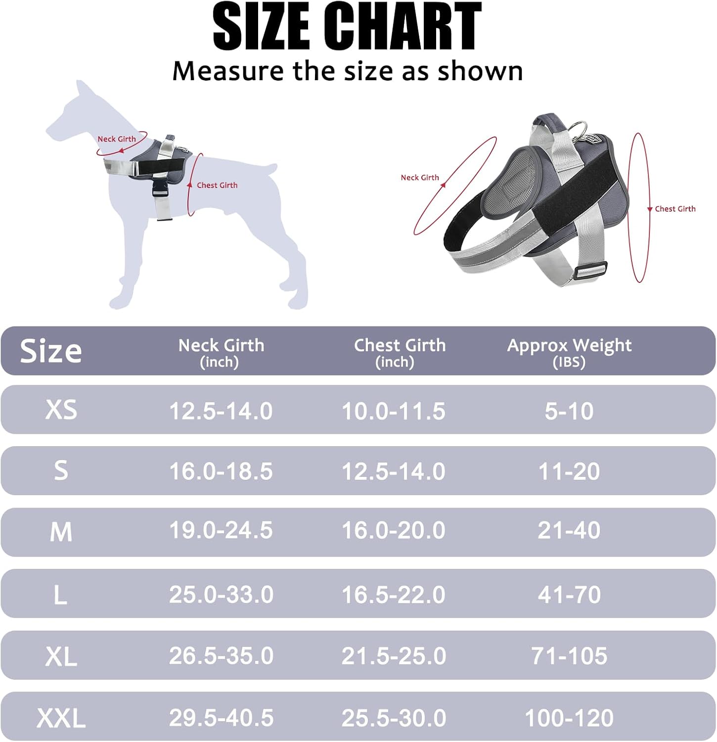 - EXTRA SMALL DOG HARNESS: ★Approx Weight: 5-10 lbs. Neck Girth: 10"-11.5", Chest Girth: 12.5"-31"★. It perfect for extra small dogs and pups, like Yorkie, Chihuahua, Pug, Maltese dog, etc.