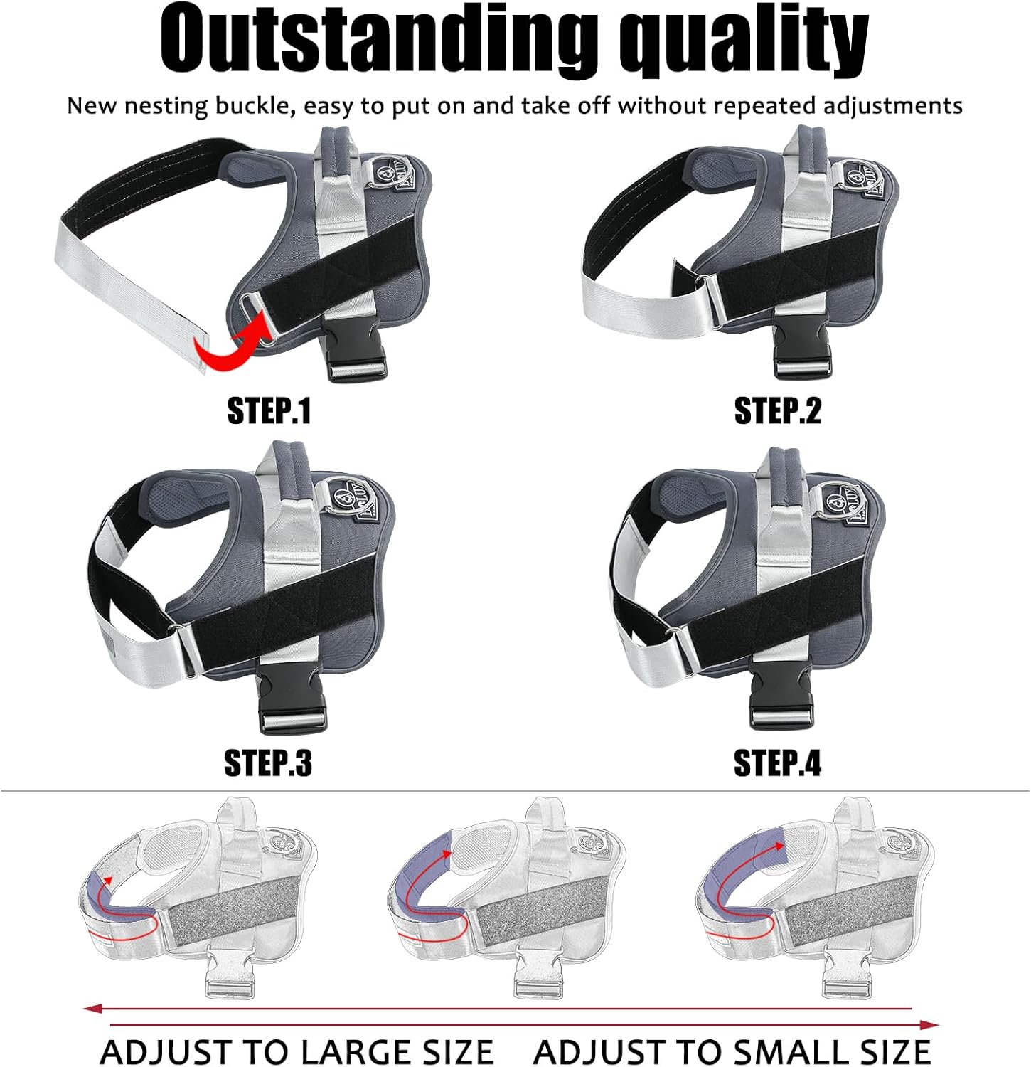 - STURDY HANDLE: The adjustable dog harness with rugged nylon handle further enhances your distance from the dog and is more intimate with each other. Easy on dog harness is also the best partner for dogs and is easy to control your dog.