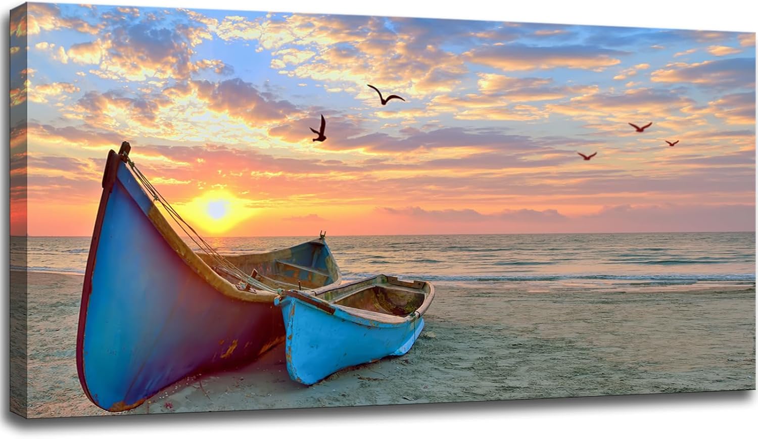 weiyiart Beach Wall Art Decor for Living Room Ocean Boat Canvas Picture for Wall Gold Sunset Painting for Bedroom Seascape Theme Art Print for Bathroom Home Office Decoration Ready to Hang 24x48 Inch