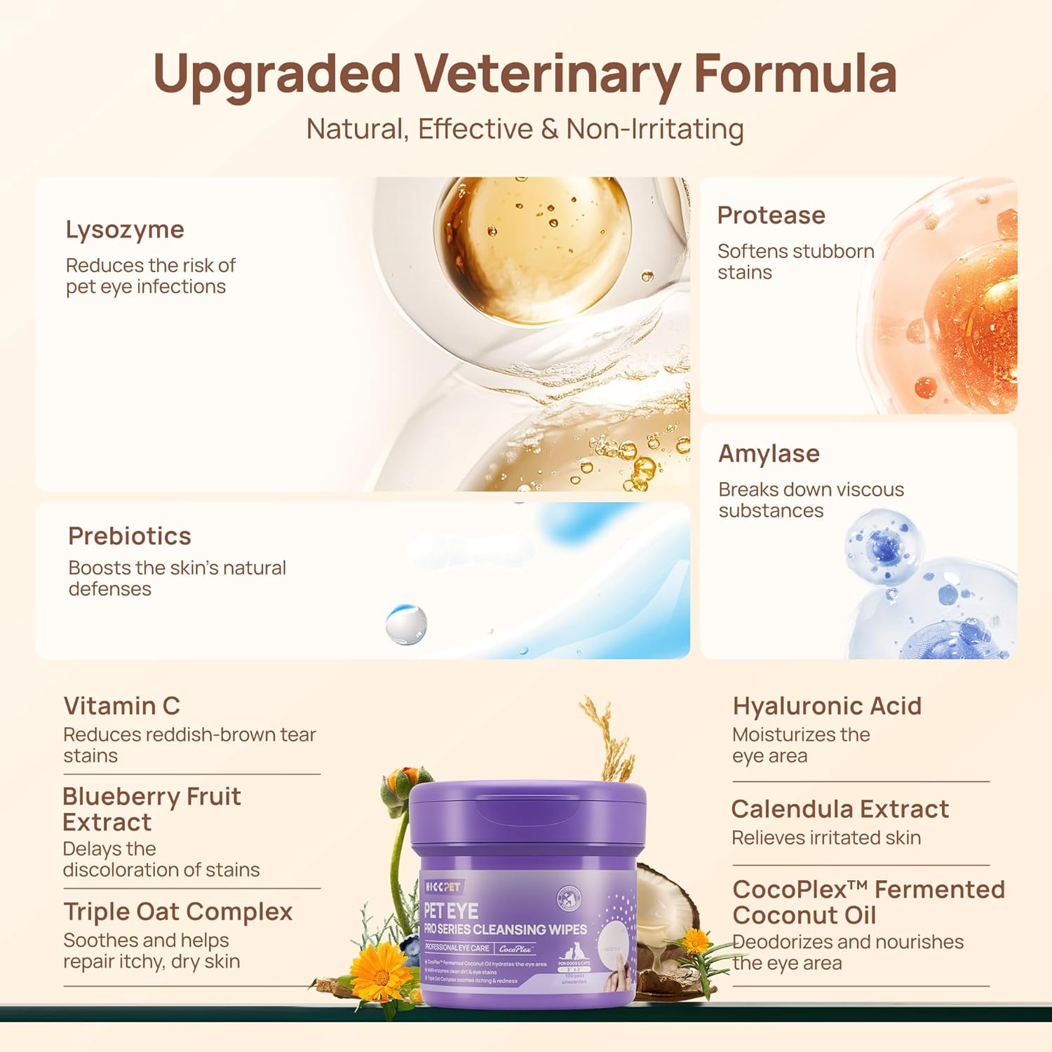 - PRO-Grade Dual-Enzyme Formula Targets the Source of Stains - We understand tear stains can be persistent. Unlike other surface-level wipes, our professional formula features a dual-enzyme system (Protease & Amylase) that works to dissolve the buildup that causes discoloration, aiding in the gradual reduction of stains with consistent use.(Enzyme may have a natural scent, but is non-irritating). It's a proactive step for maintaining cleaner, healthier-looking eyes as part of your dog's daily care