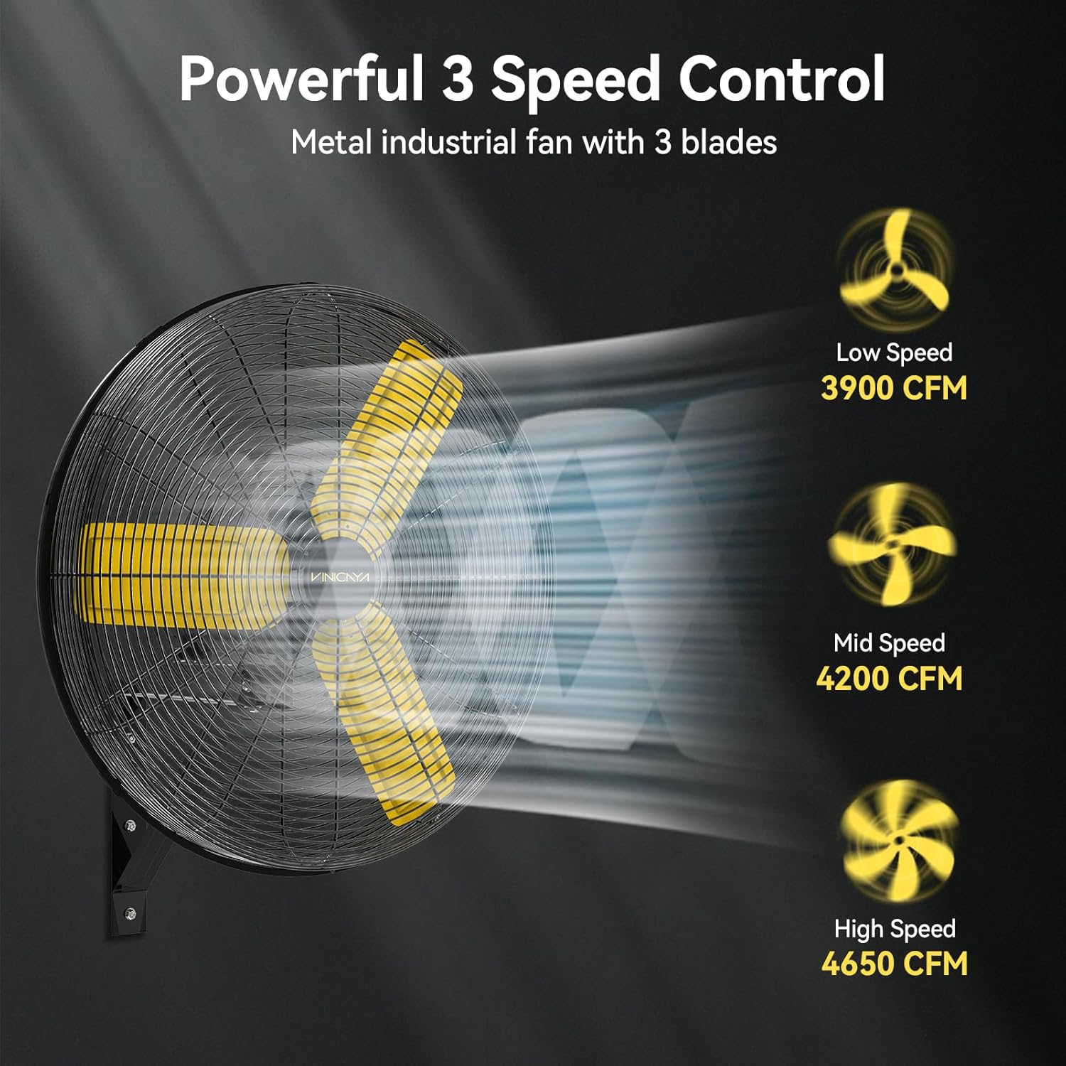 - Powerful Air Movement: VINICAYA industrial wall fan equipped with a powerful motor and large blades to deliver strong, wide-reaching airflow to quickly cool and ventilate large spaces, making it ideal for industrial and commercial use